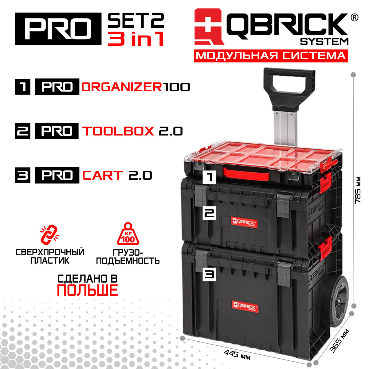 Набор ящиков Qbrick System PRO Set 2 (3-в-1: PRO Cart, PRO Toolbox, PRO Organizer 100) (Z254386PG001) интересное: