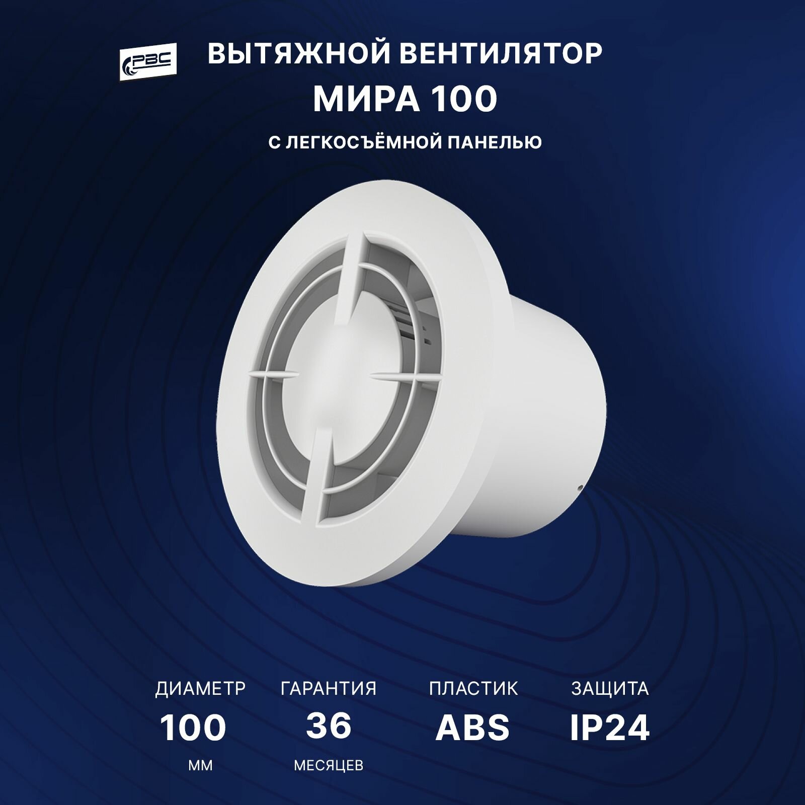 Вентилятор вытяжной круглый с легкосъемной панелью РВС Мира 125