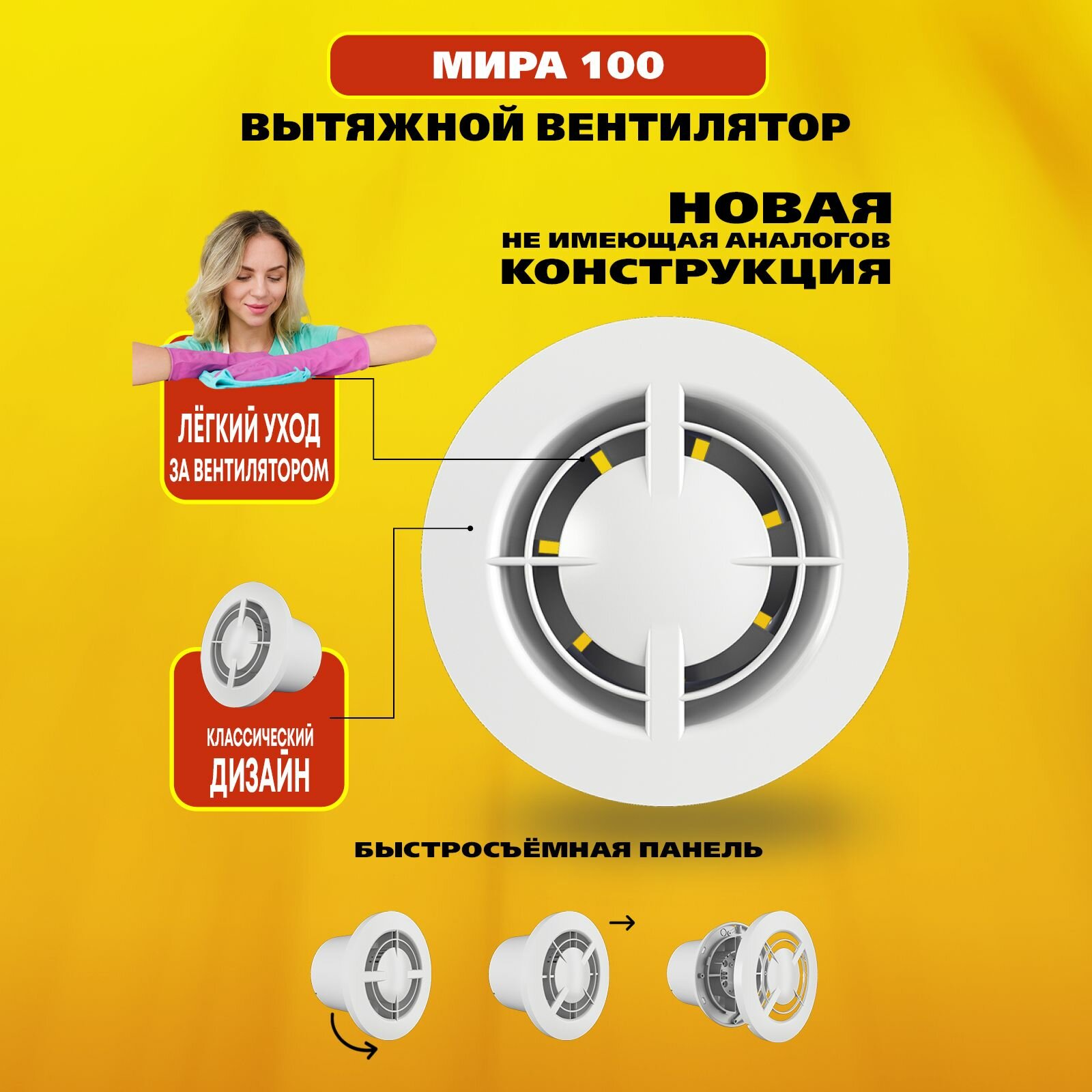 Вытяжной вентилятор с быстросъемной панелью Мира 100, 14 Вт, 34 дБ, 101 м3/ч интересное: