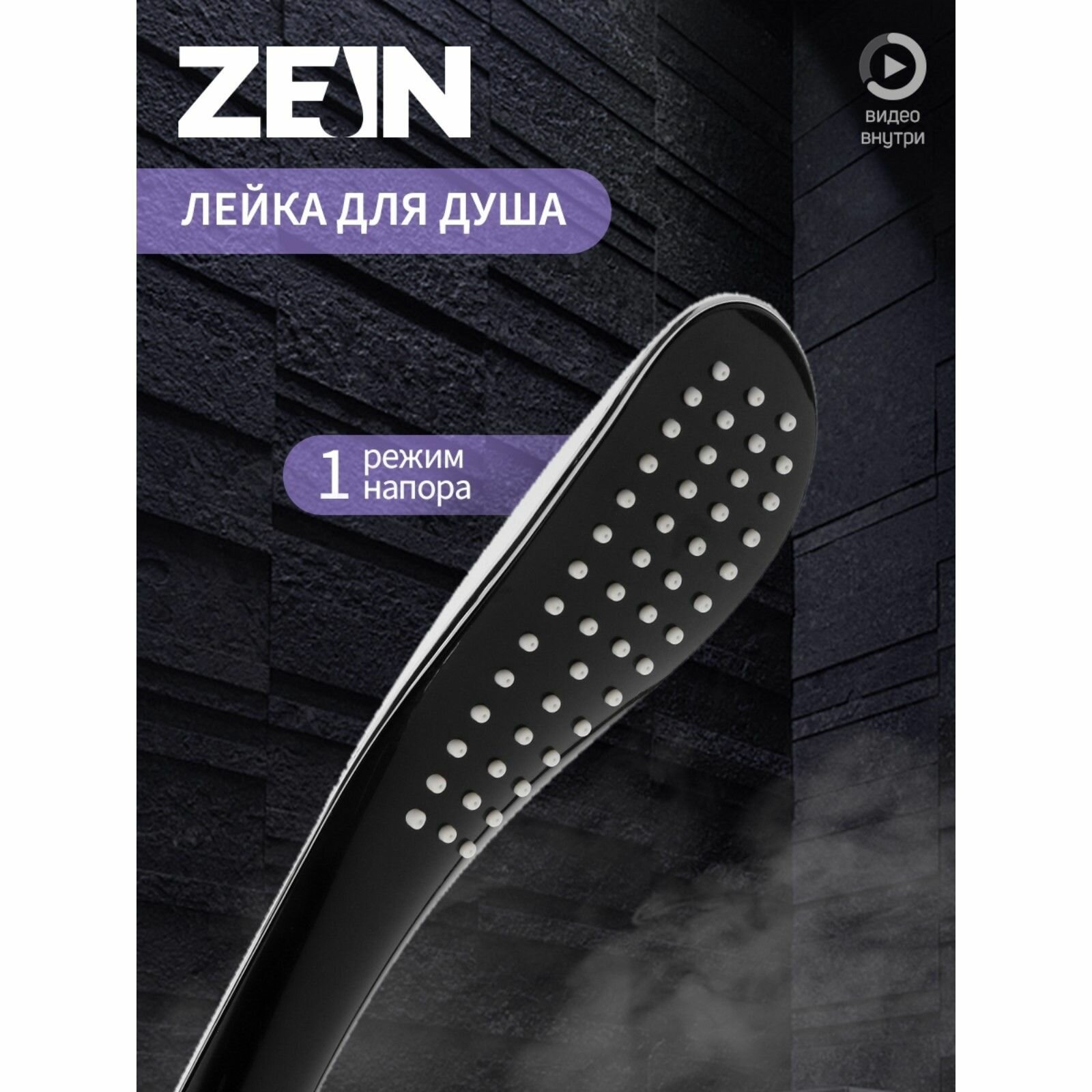 Душевая лейка ZEIN Z0201, 1 режим, 63х250 мм, пластик, цвет черный/хром