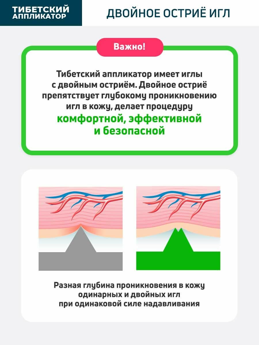 | Дополнительная информация | мягкая подложка толщиной 0,6 см; двойное острие игл, препятствует глубокому проникновению игл в кожу |