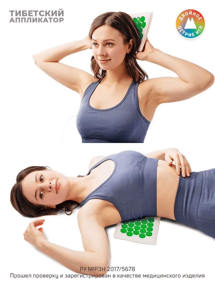 СохранитьАппликатор Кузнецова. Тибетский акупунктурный массажный коврик малый 12х22 см., зеленый интересное: