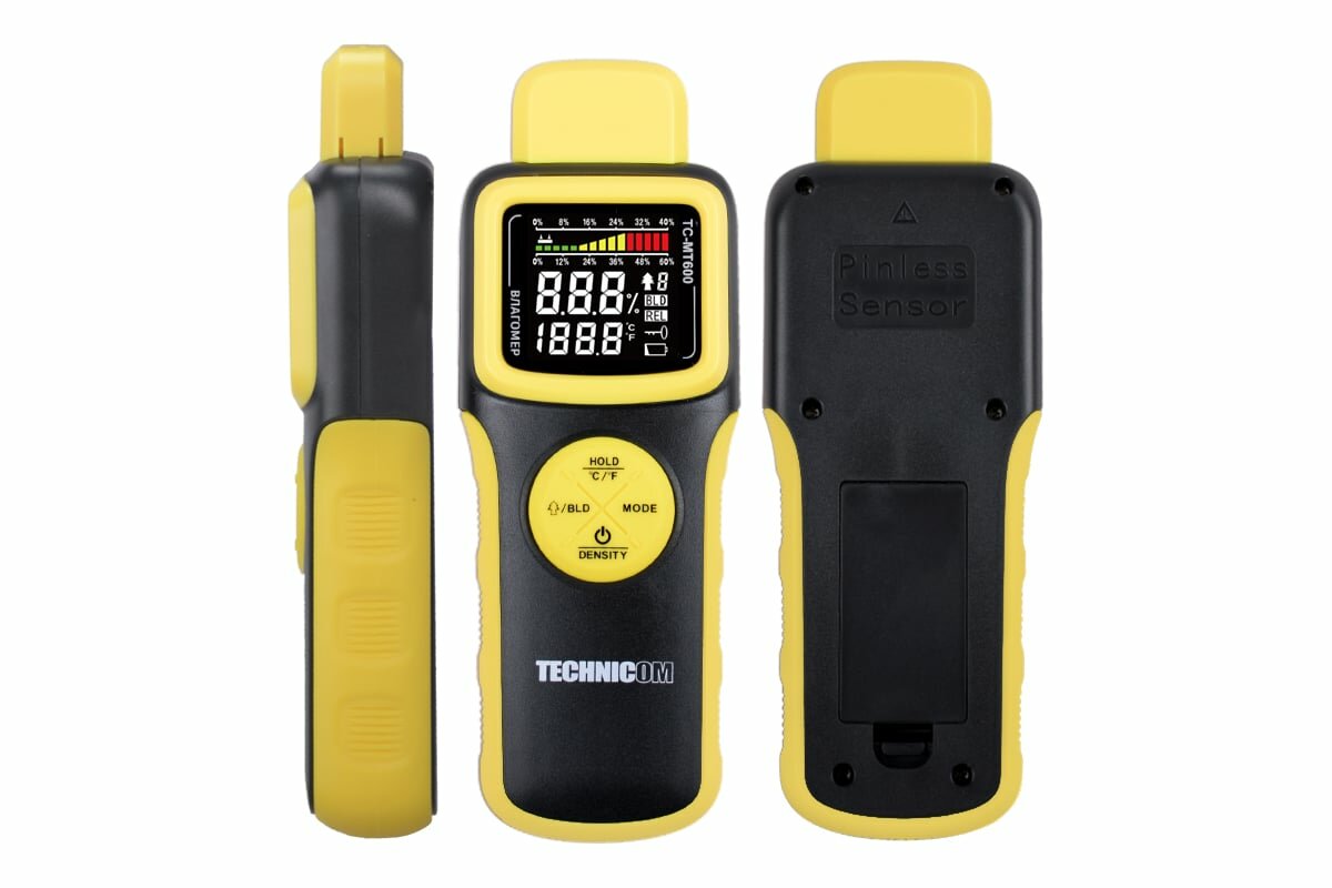 Измеритель влажности древесины бесконтактный TECHNICOM TC-MT600, 1х9В, влажность 0-60%, ЖК дисплей