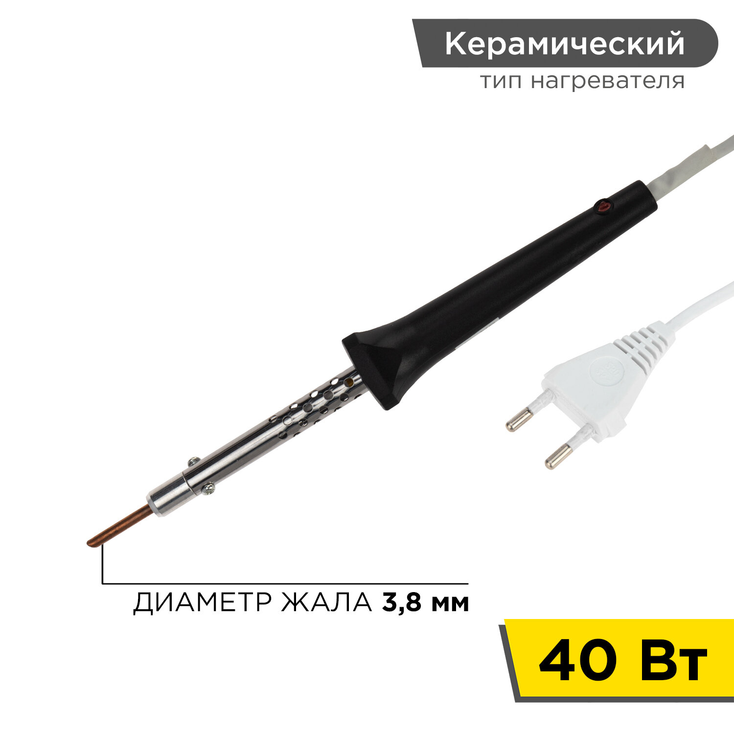 Паяльник REXANT, керам.нагреватель, 40 Вт, 230 В, ЭПСН интересное: