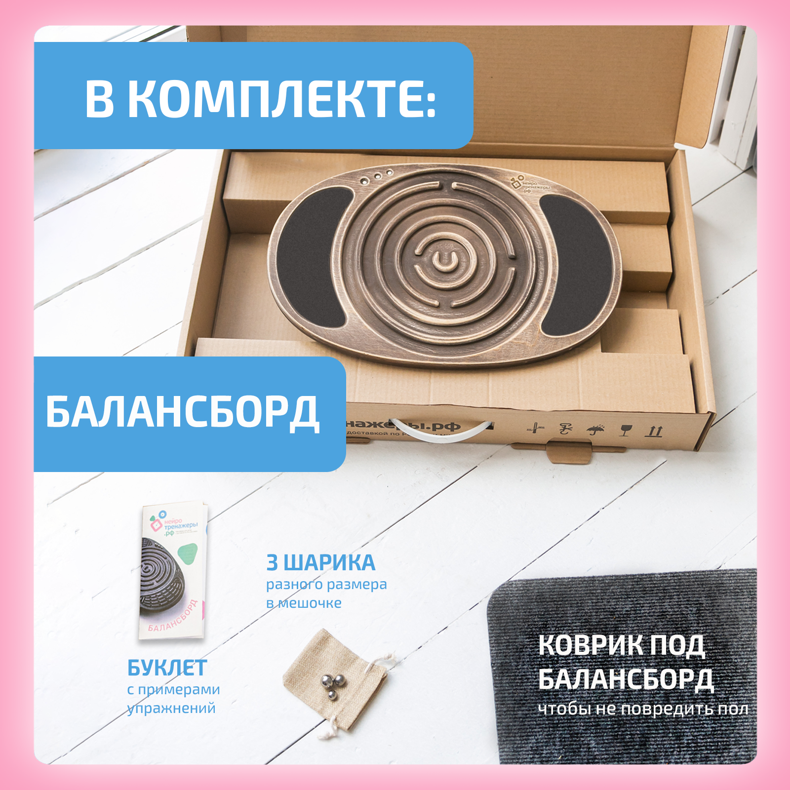 | Дополнительная информация | Подходит для детей и взрослых; подробная комплектация: Балансборд - 1 шт., Металлические шарики 10, 15 и 19 мм по 1шт., Джутовый мешочек - 1 шт., Коврик, Буклет с упражнениями; материал доски: дерево; форма доски: овальная; точка опоры: прикреплена к платформе; вид цилиндра: обычный |