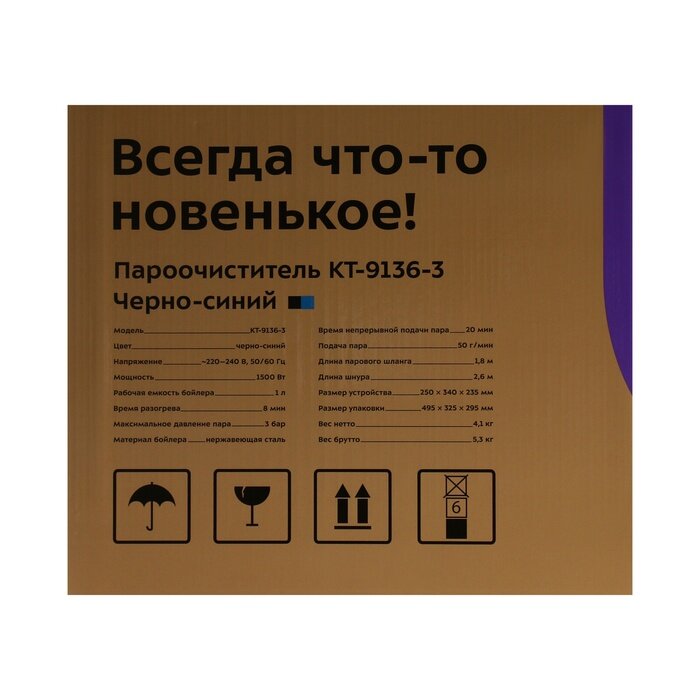 Пароочиститель Kitfort КТ-9136-3, черно-синий интересное: