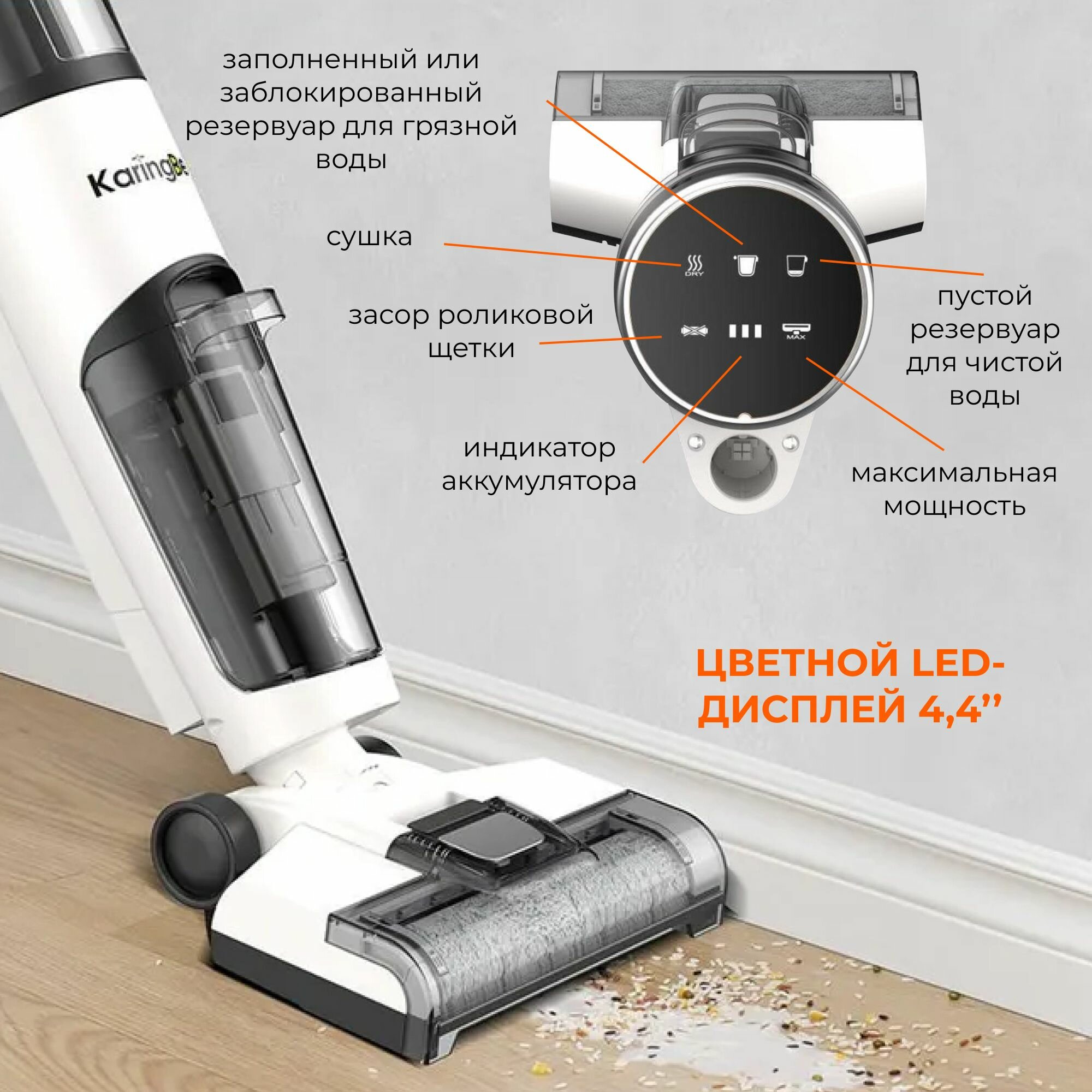 Моющий пылесос вертикальный беспроводной KaringBee M2, для сухой и влажной Оснащен функцией самоочистки и сушки насадок