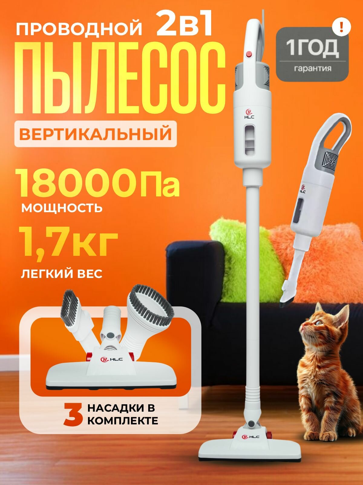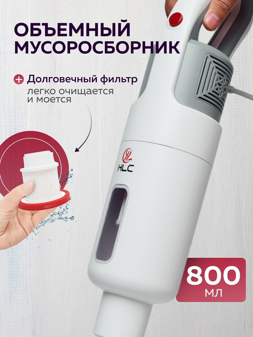 Купить Пылесос вертикальный для дома HLC P14, ручной пылесос с контейнером для сухой уборки дома и мебели, 3 насадки в комплекте, белый, подарок