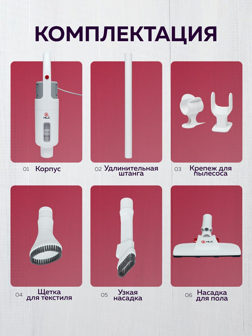 Пылесос вертикальный для дома HLC P14, ручной пылесос с контейнером для сухой уборки дома и мебели, 3 насадки в комплекте, подарок