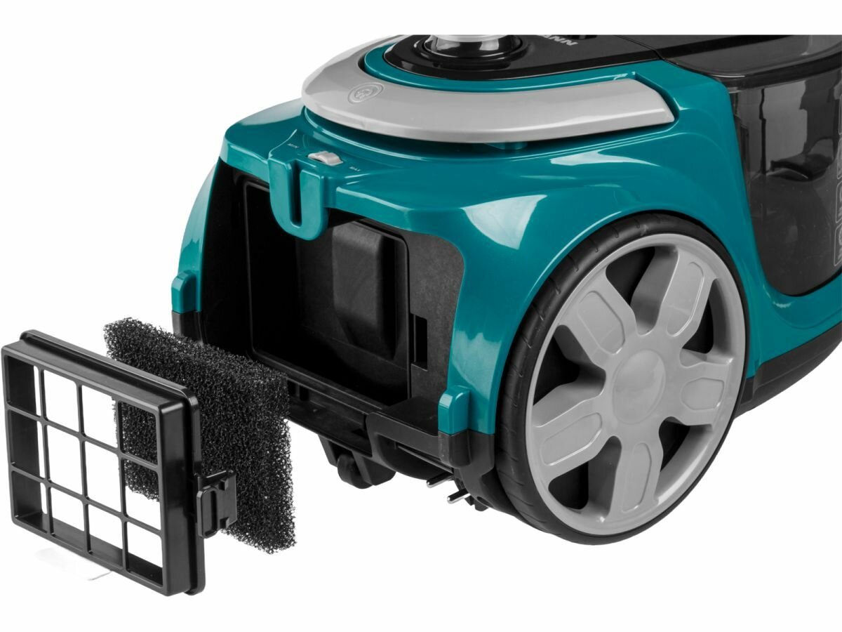 | Дополнительная информация | контейнер с циклонным фильтром, многоступенчатая система фильтрации, включающая HEPA-фильтр, радиус действия - 7,8 м. |