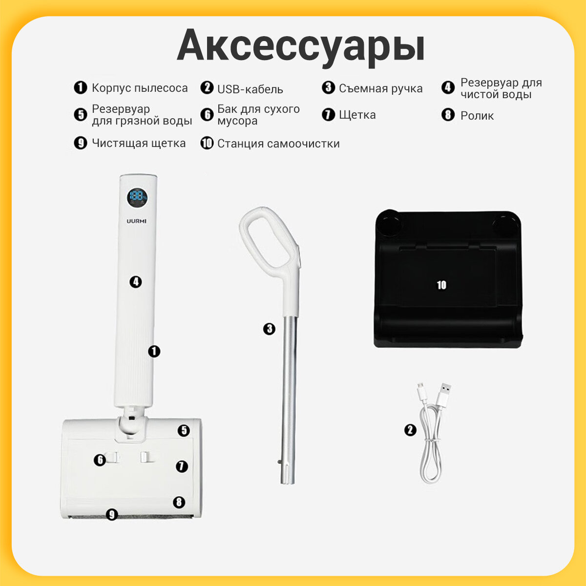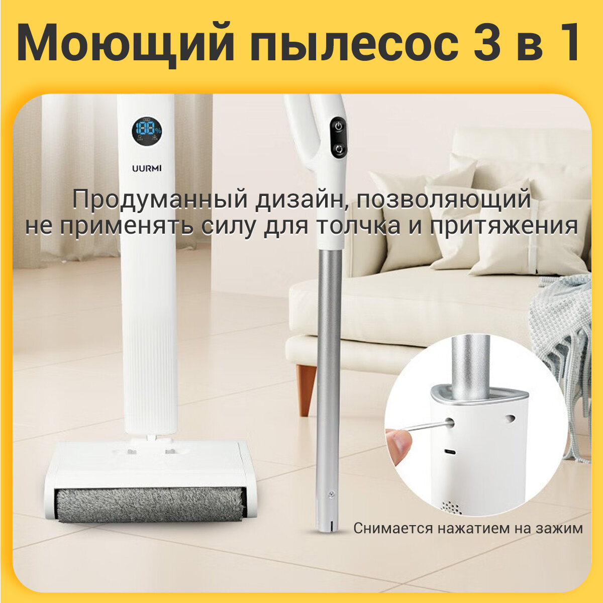 Пылесос моющий беспроводной UURMI F18,Самоочистка,с влажной уборкой,Интеллектуальное голосовое сопровождение интересное: