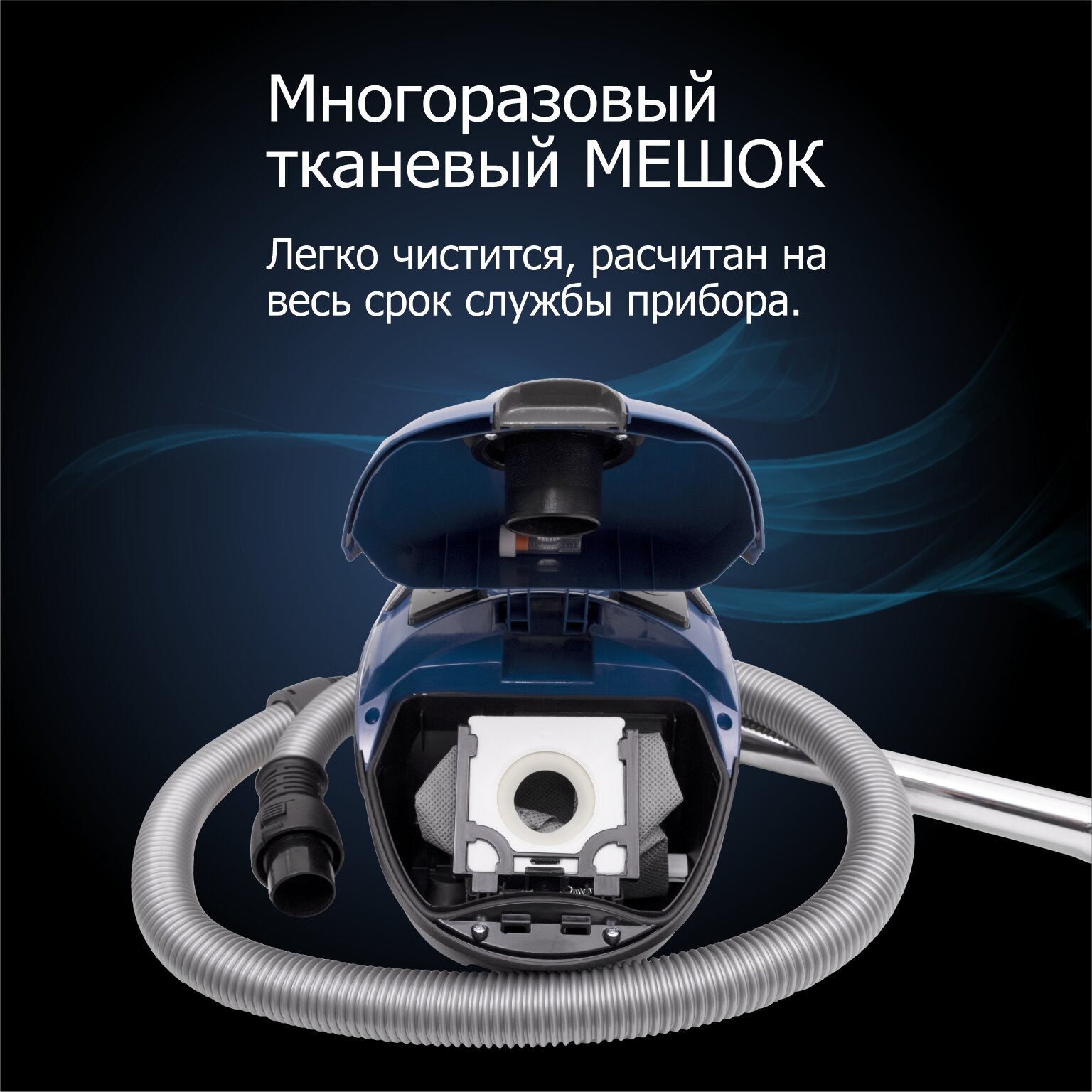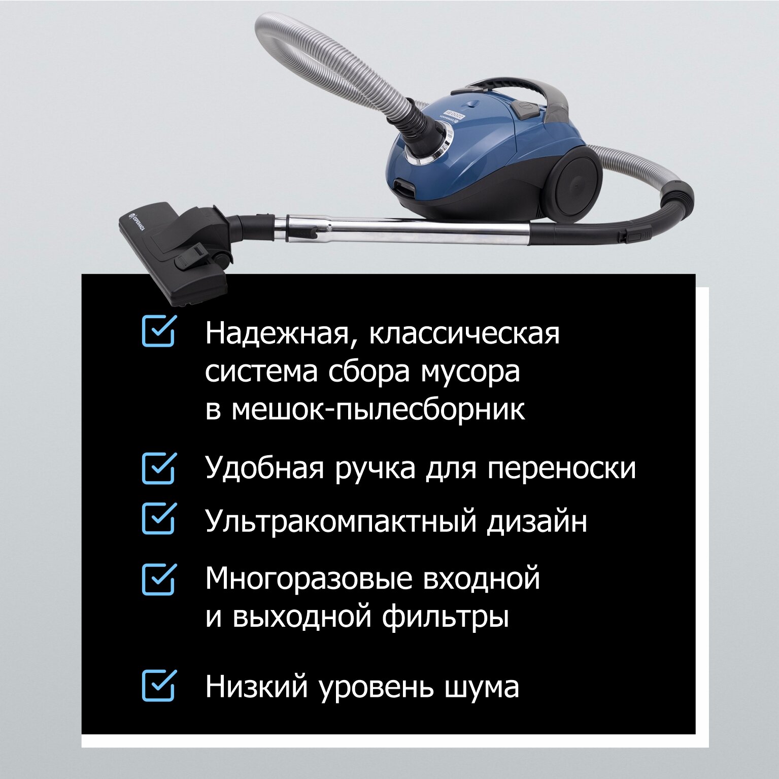 Купить Мощный пылесос бытовой тихий для дома с мешком 1,5 л 250 Вт/2200 Вт ESPERANZA VC-B101, синий
