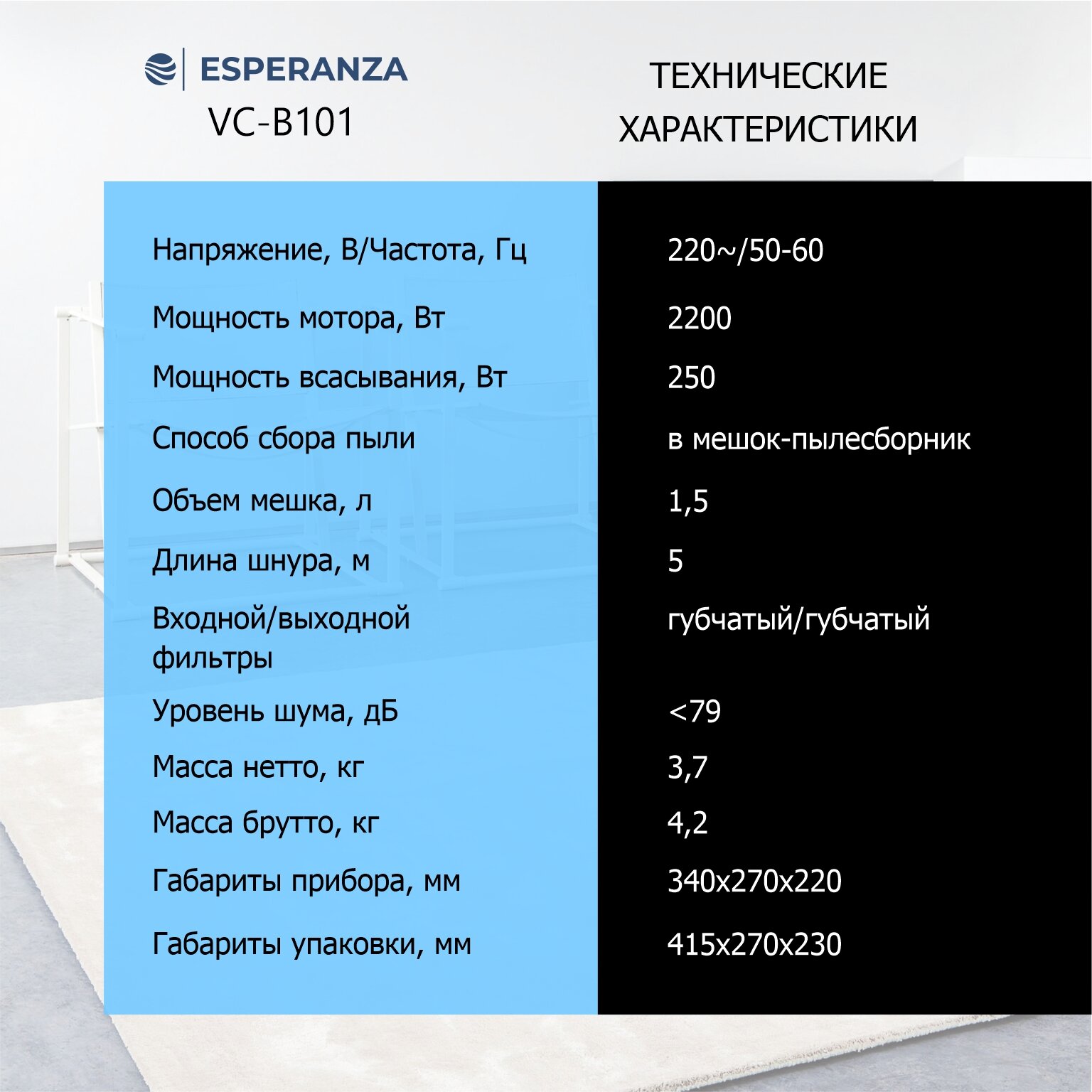 СохранитьМощный пылесос бытовой тихий для дома с мешком 1,5 л 250 Вт/2200 Вт ESPERANZA VC-B101, синий интересное: