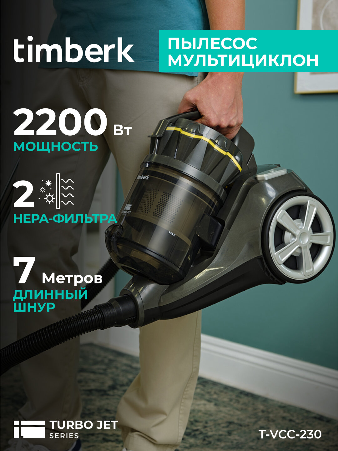 Пылесос мультициклон Timberk T-VCC-230 с 3 литровым контейнером и шнуром 7 метров интересное: