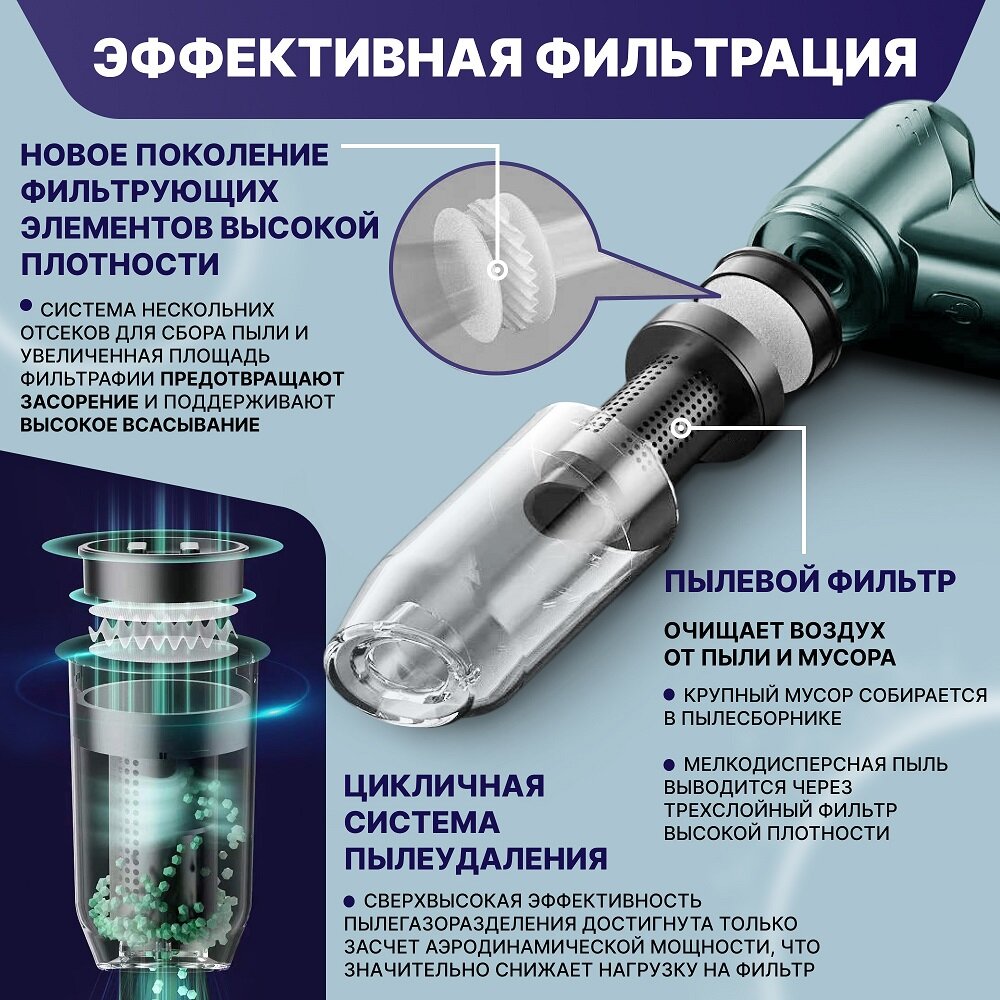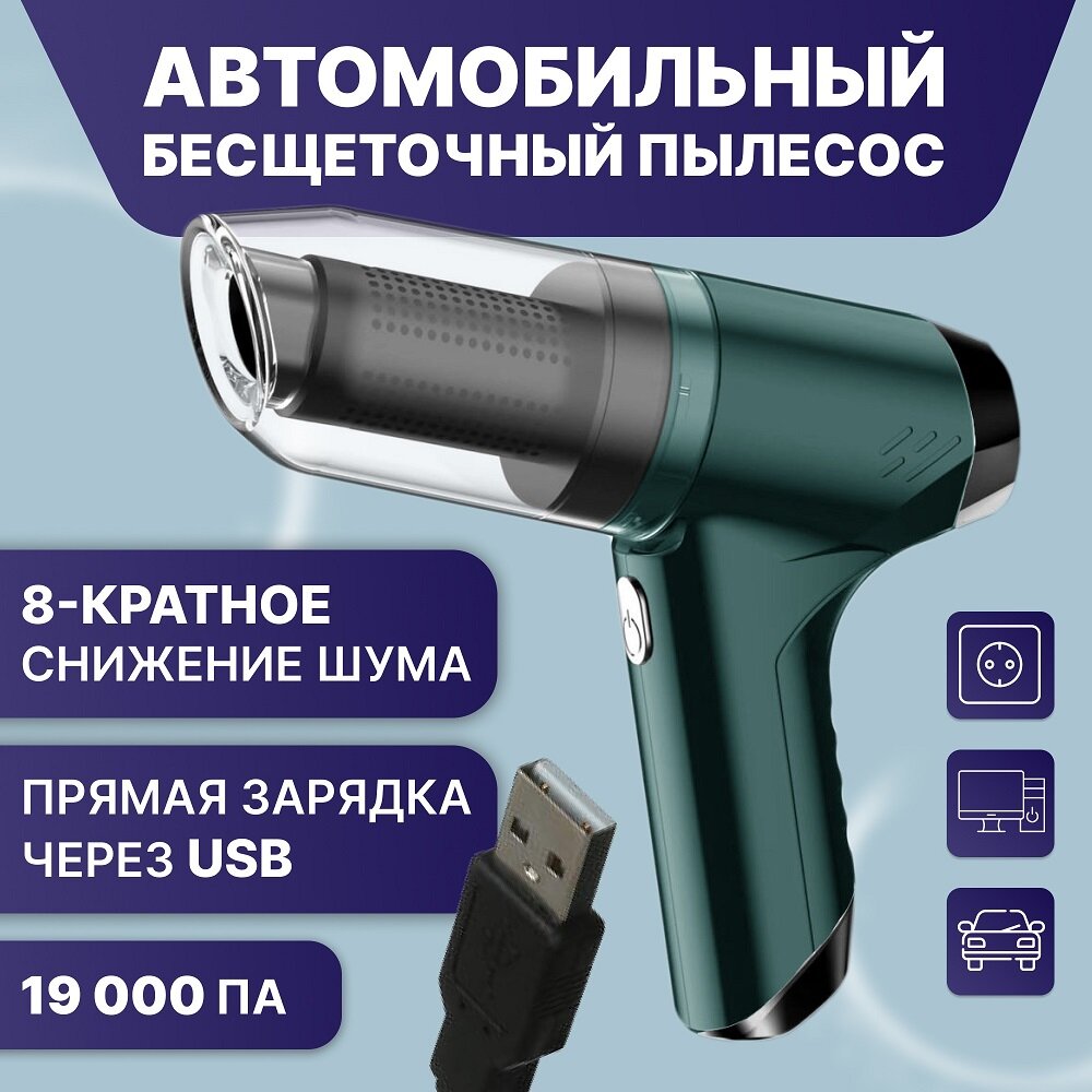 Автомобильный аккумуляторный мини-пылесос циклонного типа, цвет зеленый интересное: