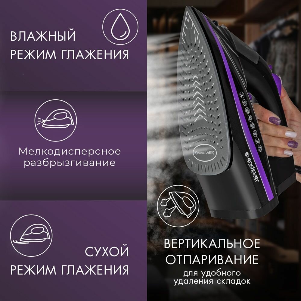 Купить Утюг с отпаривателем с сенсорным управлением и автоотключением Endever Delta-230, 2800 Вт, 300 мл бак для воды