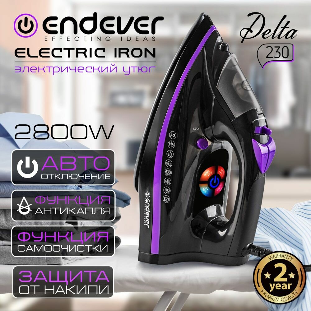 Утюг с отпаривателем с сенсорным управлением и автоотключением Endever Delta-230, 2800 Вт, 300 мл бак для воды интересное: