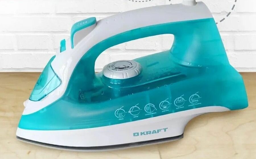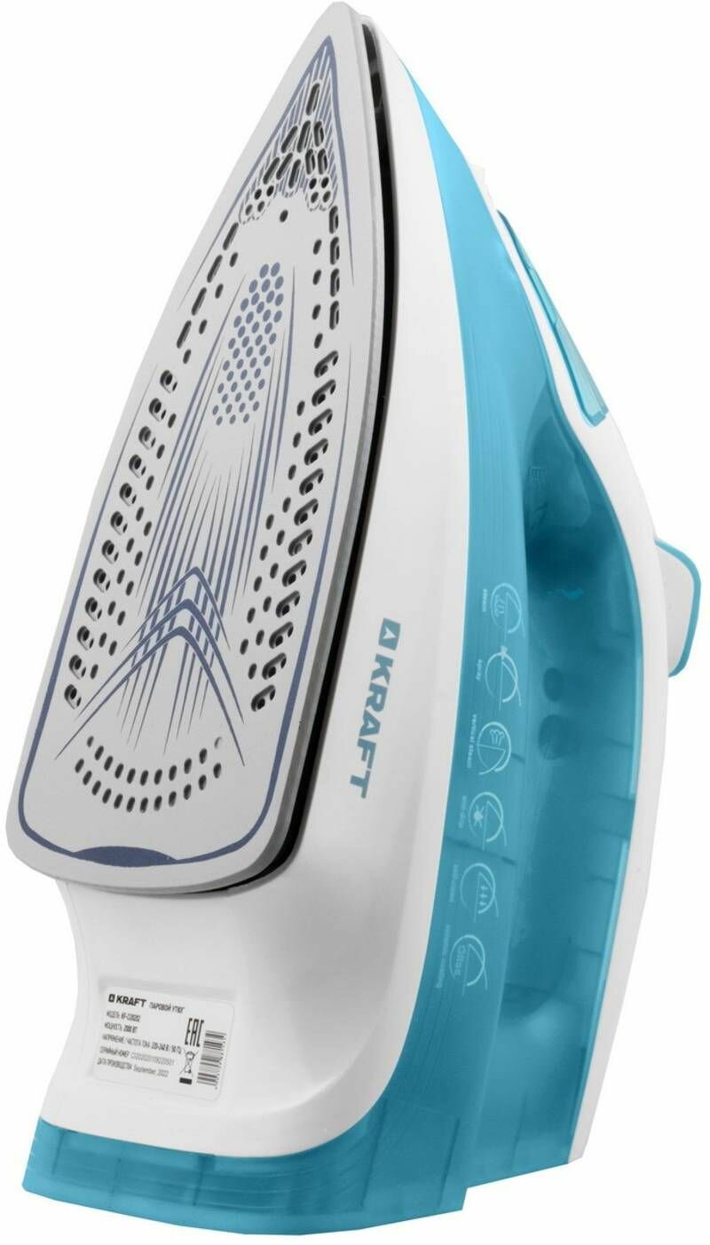 Утюг Kraft KF-CI20202, мощность 2000 Вт, подача пара до 30 г/мин, паровой удар до 120 г, голубой