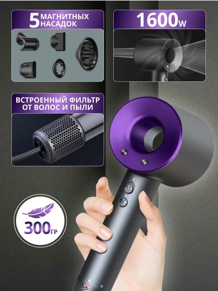 Фен для волос профессиональный/ Супер фен для укладки волос/ Фен стайлер 5 в 1/ Premium/ 5 магнитных насадок/