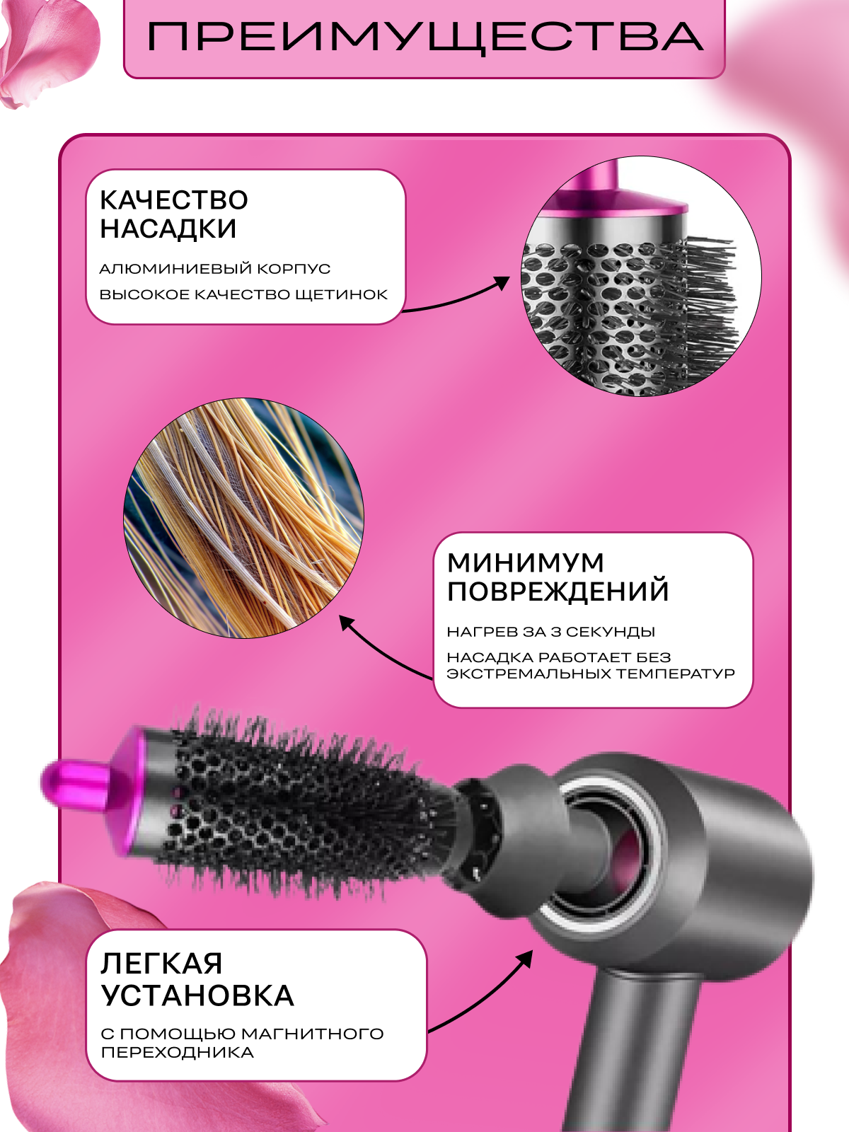 Насадка для фена Dyson и Super Hair Dryer с брашингом розовая интересное: