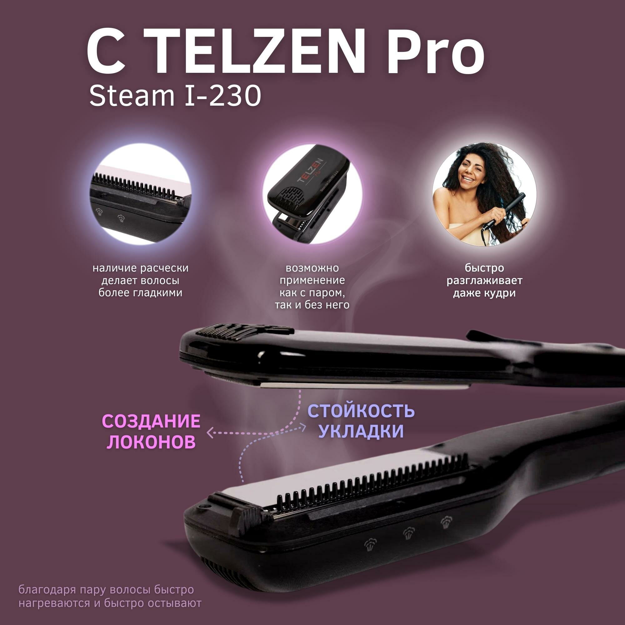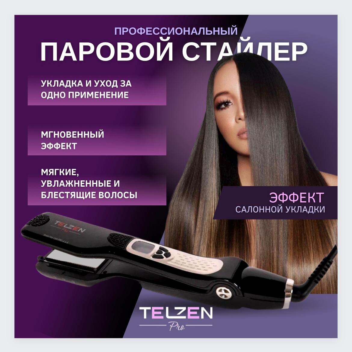 Выпрямитель паровой для волос TELZEN, утюжок профессиональный