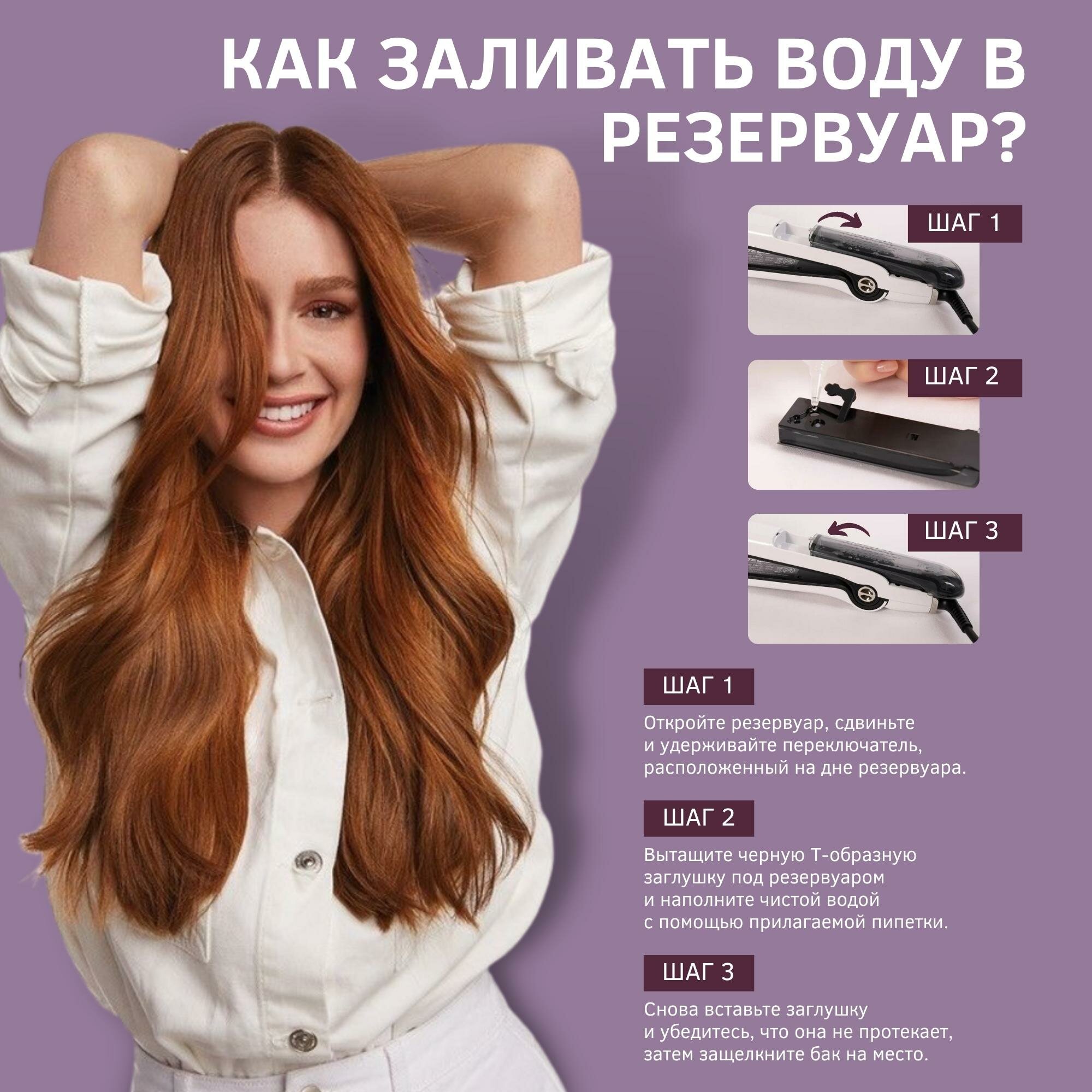 | Дополнительная информация | паровой выпрямитель для волос, профессиональный уход за волосами, блестящие и здоровые волосы |