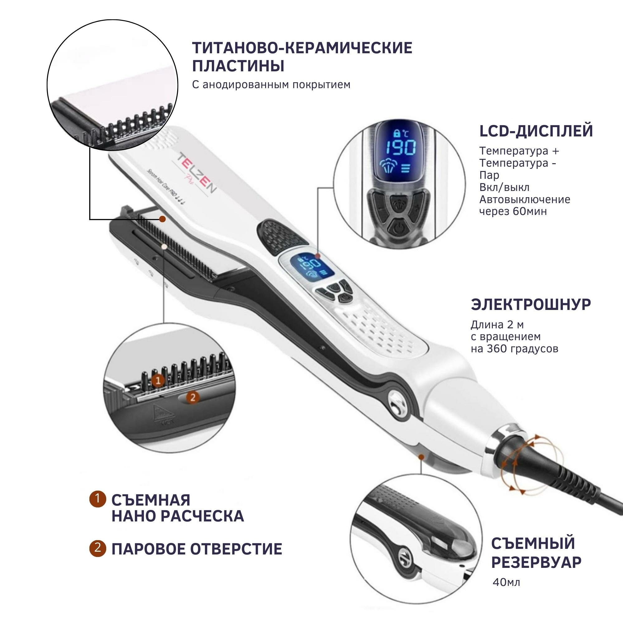 Выпрямитель паровой для волос TELZEN, утюжок профессиональный интересное: