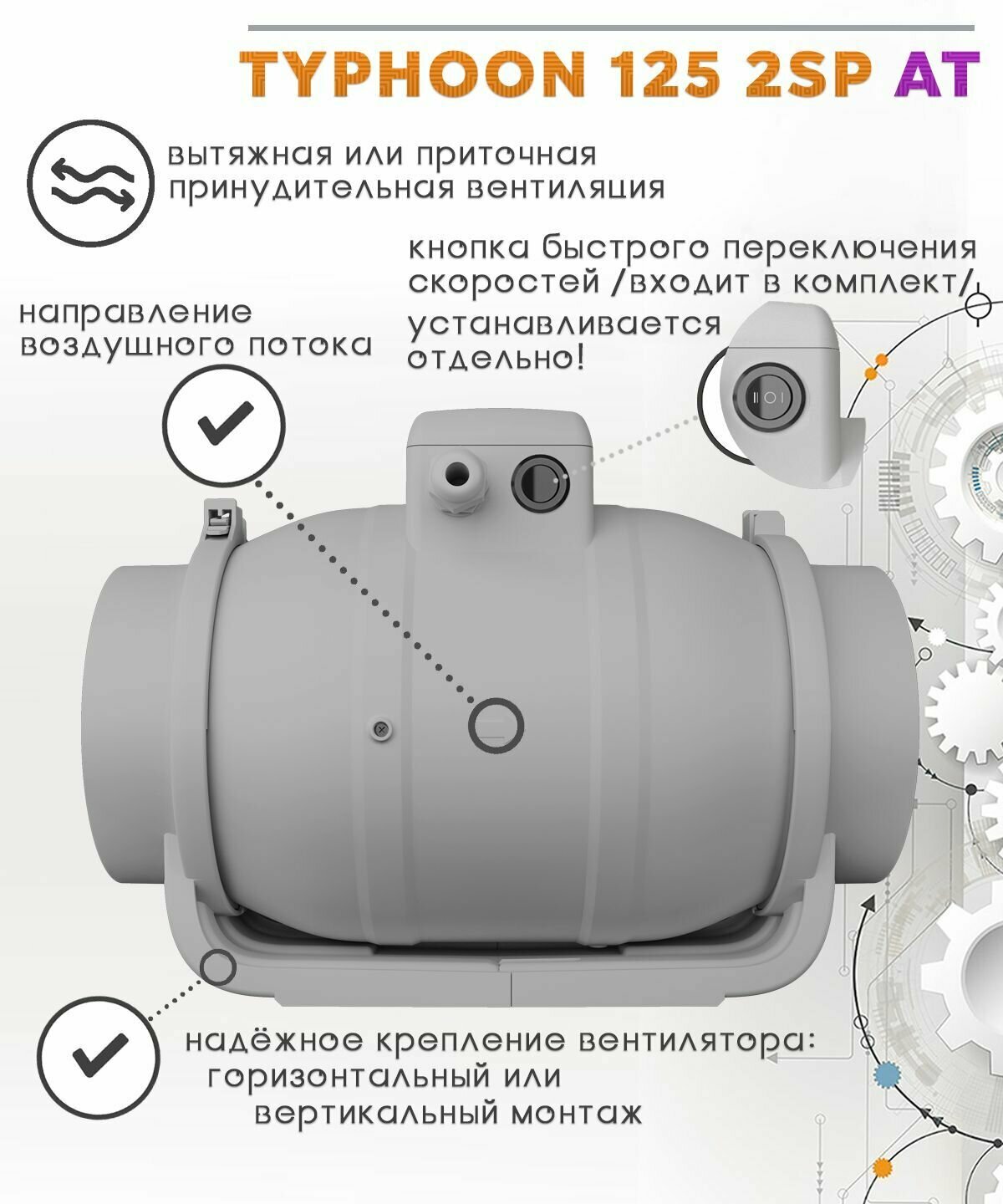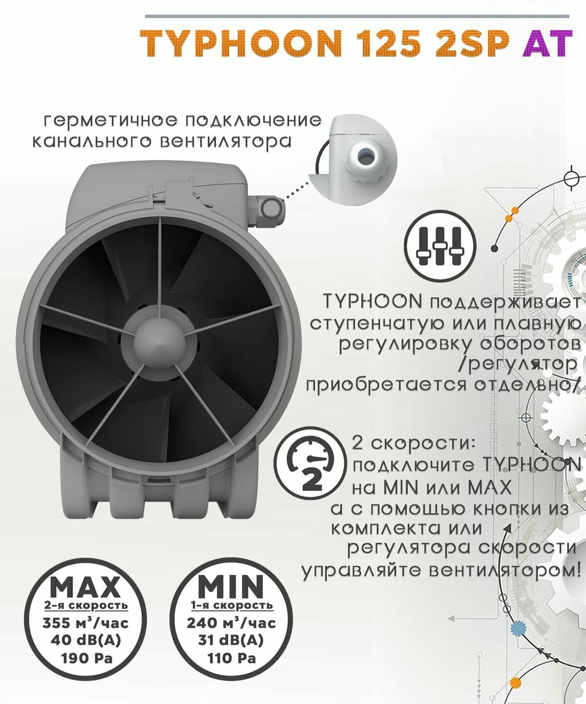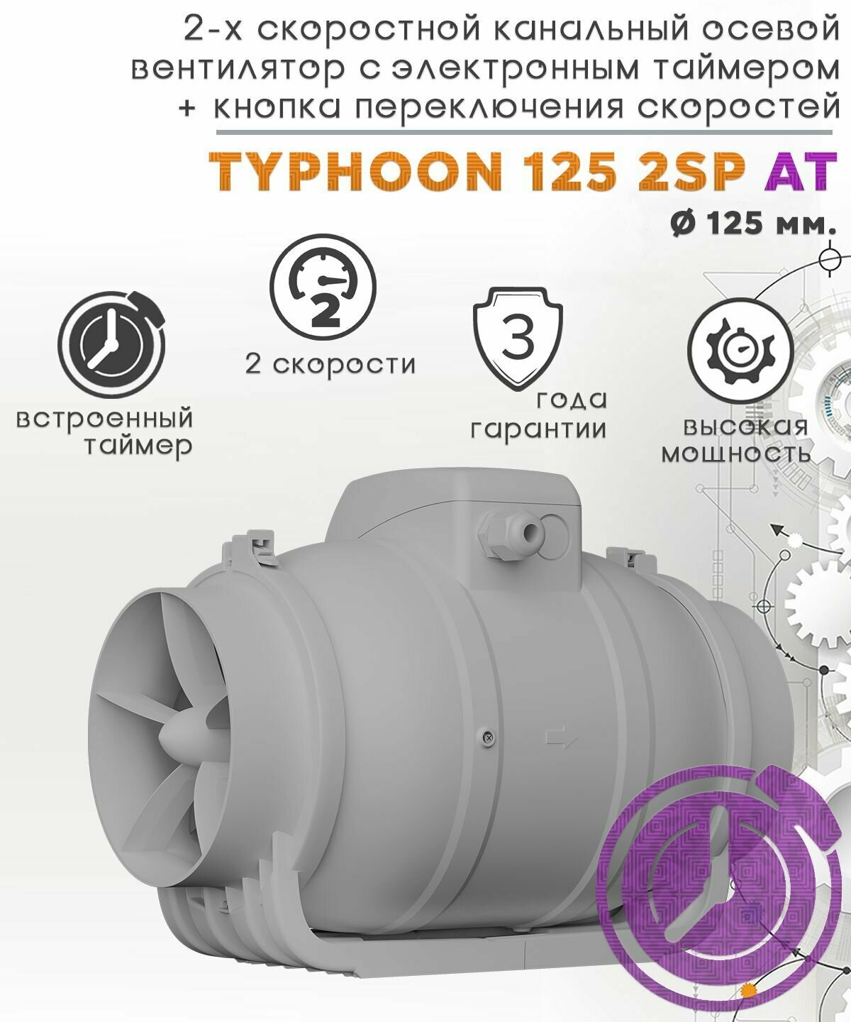 Канальный вентилятор TYPHOON 125 2SP AT коммерческий с таймером