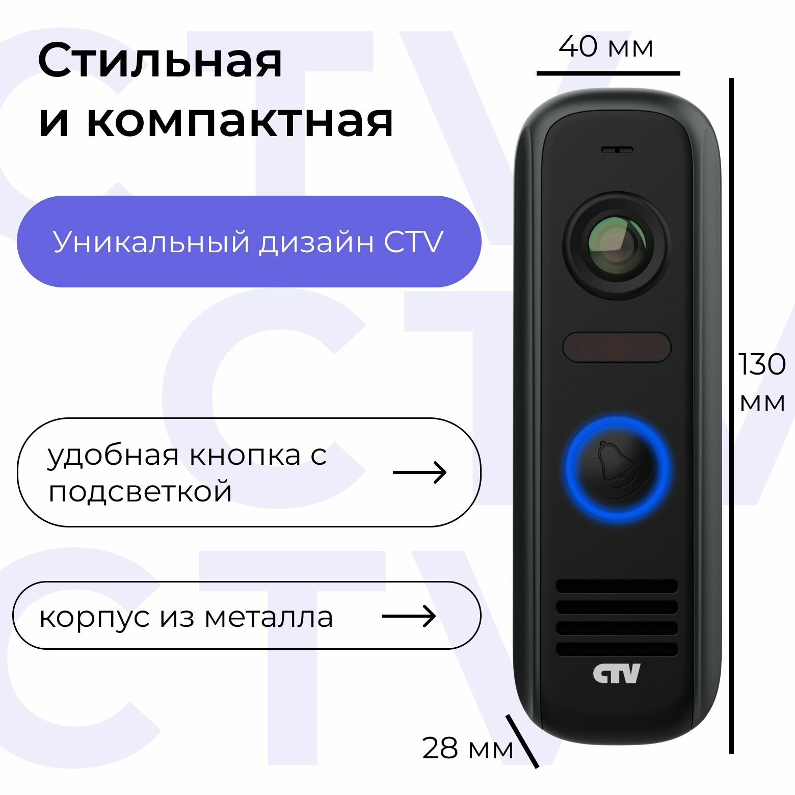 Вызывная панель видеодомофона CTV-D4000S (Черный), Видеокамера 2Mp FULL HD, обзор 150 градусов. ИК-подсветка. Встроенный БУЗ. Антивандальный корпус, -40...+50С