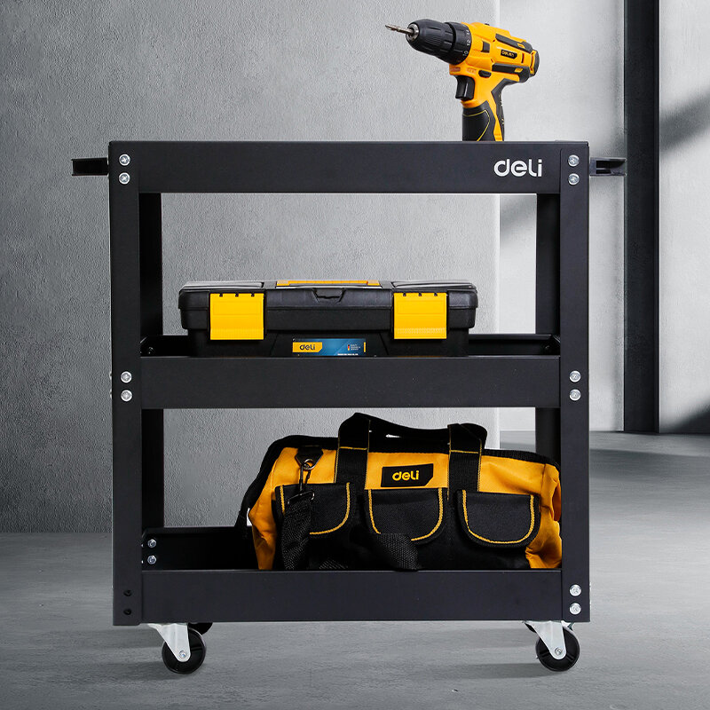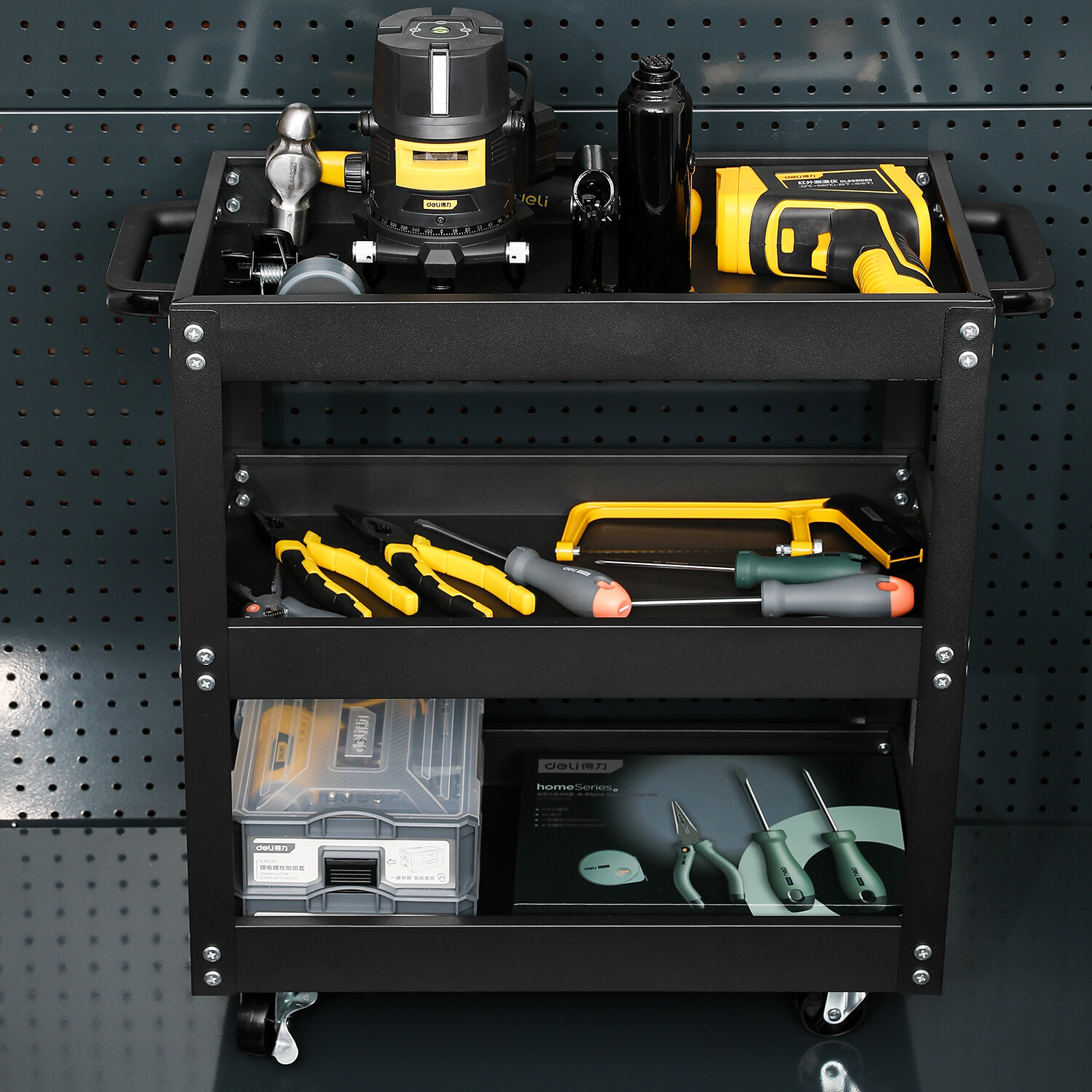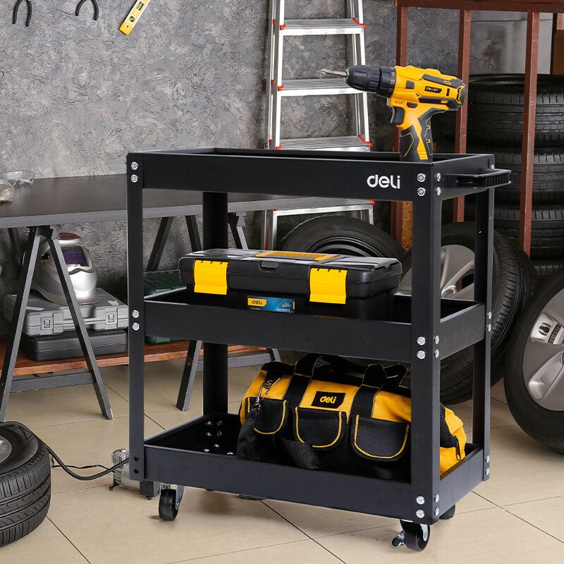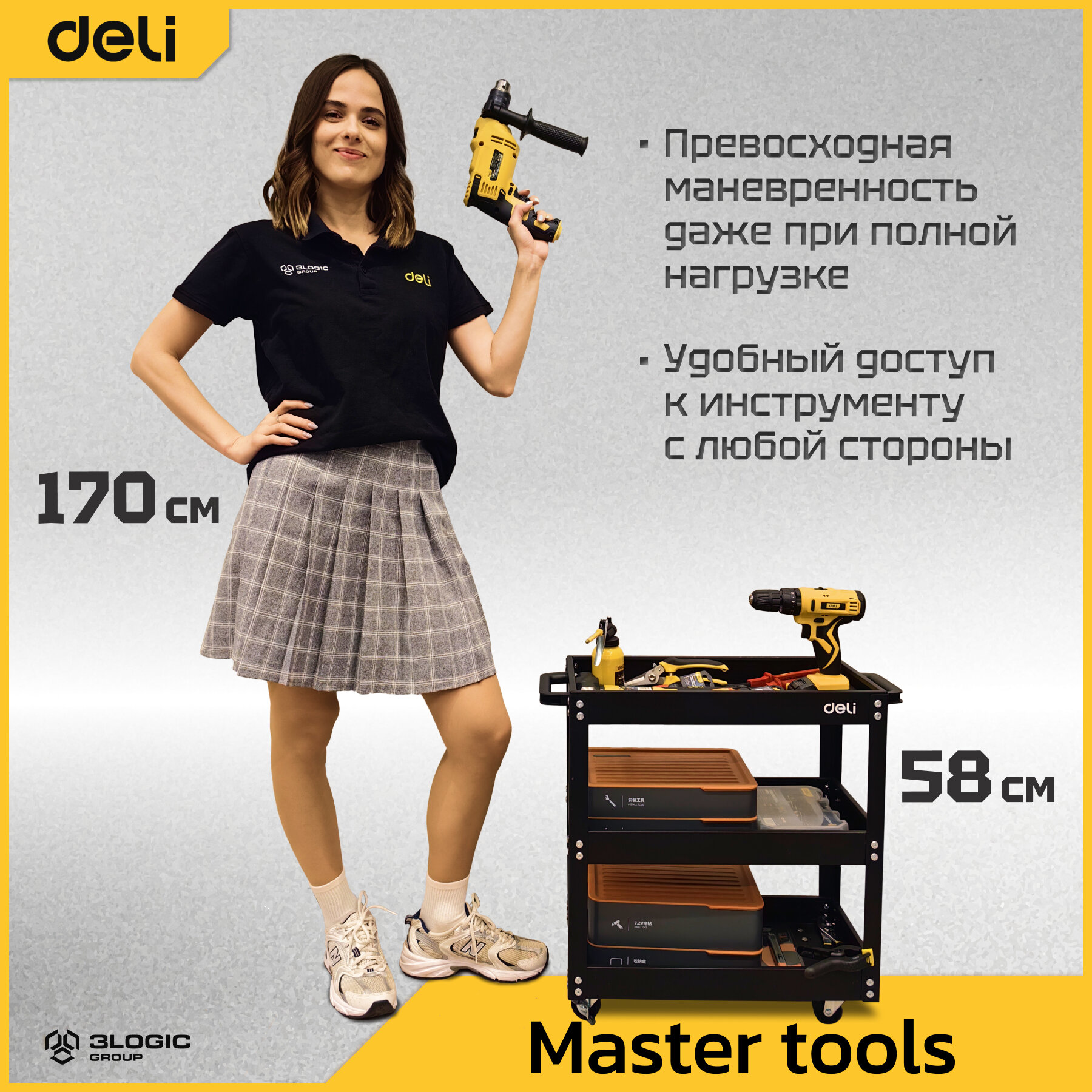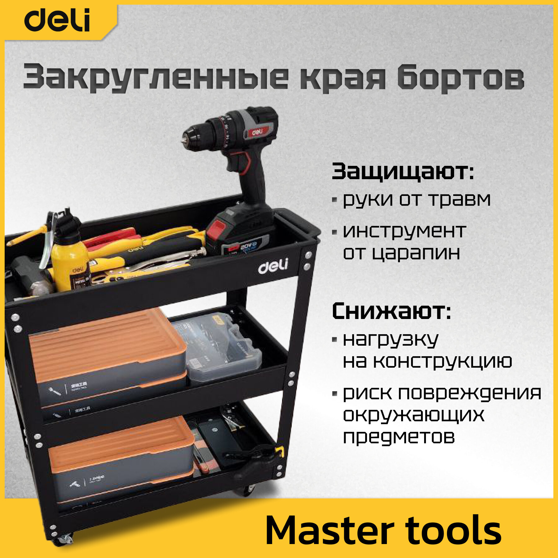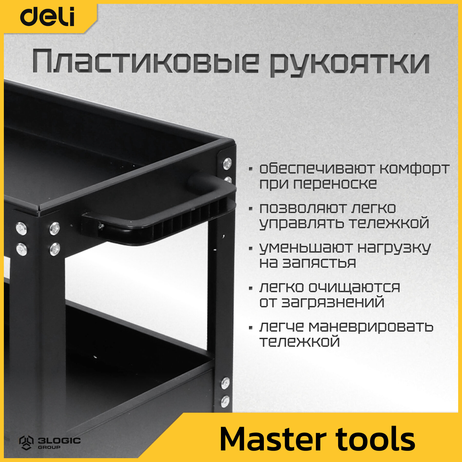 Deli Тележка инструментальная Deli DL433023, трехсекционная на колесах, до 210 кг, черный (700мм, 350мм, 760мм)