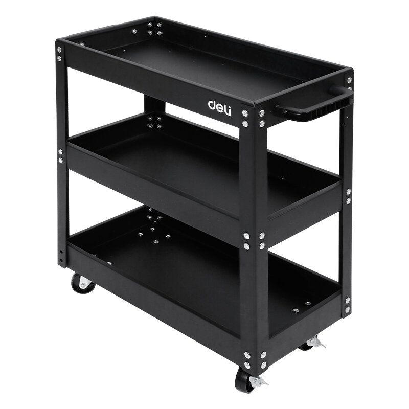 Deli Тележка инструментальная Deli DL433023, трехсекционная на колесах, до 210 кг, черный (700мм, 350мм, 760мм)