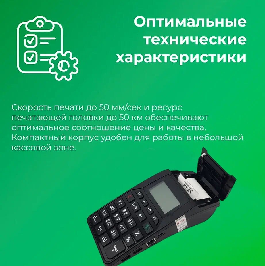 | Дополнительная информация | экран 2,7’’ c разрешением 6 строк; температурный режим работы от -10°C до +45°С; билетный режим; возможность печати QR-кода |