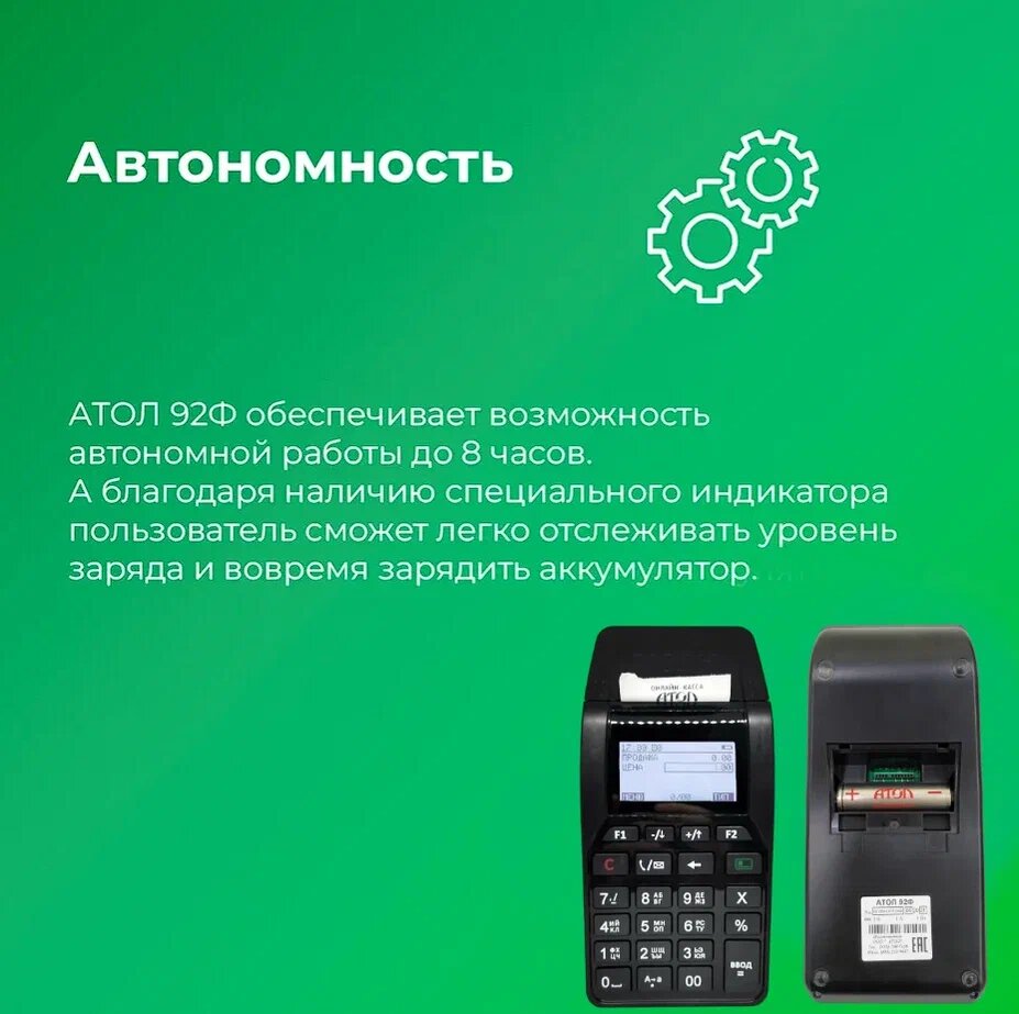 ККТ АТОЛ 92Ф. Черный. Без ФН. Ethernet. 2G. Bluetooth. Wi-Fi. 5.0
