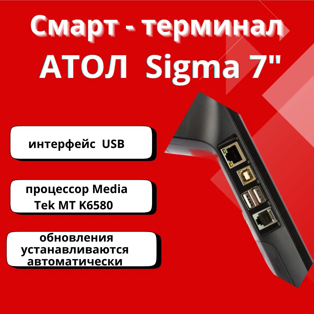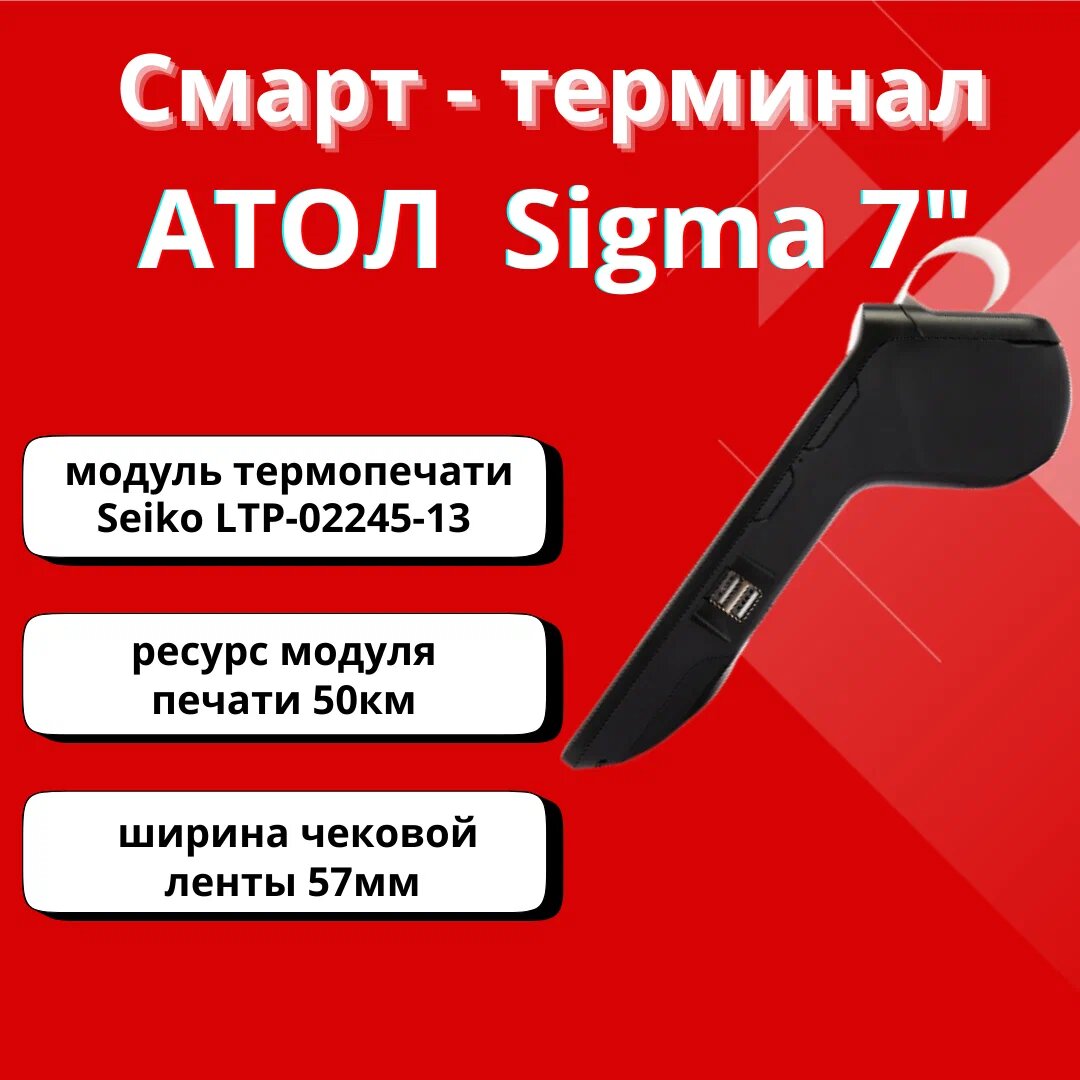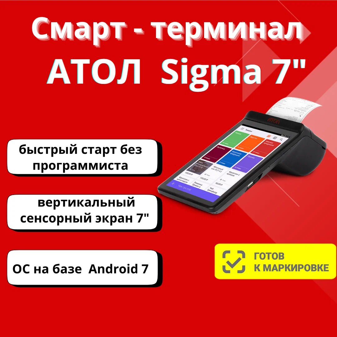 Купить Смарт-терминал онлайн касса АТОЛ Сигма 7 (без ФН; 1 Гб /8 Гб; 70 мм/с; аккум.-р 18650 х 2 (2600 мА*ч); черный )