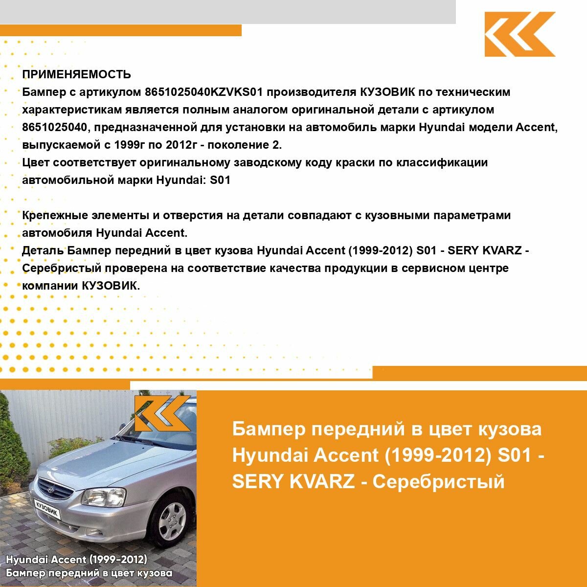 СохранитьБампер передний в цвет кузова Хендай Акцент Hyundai Accent S01 - SERY KVARZ - Серебристый интересное: