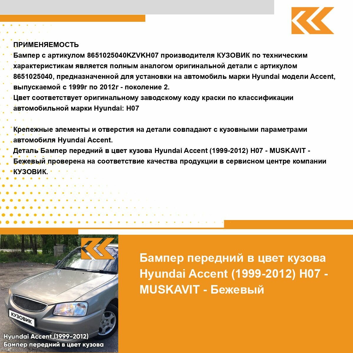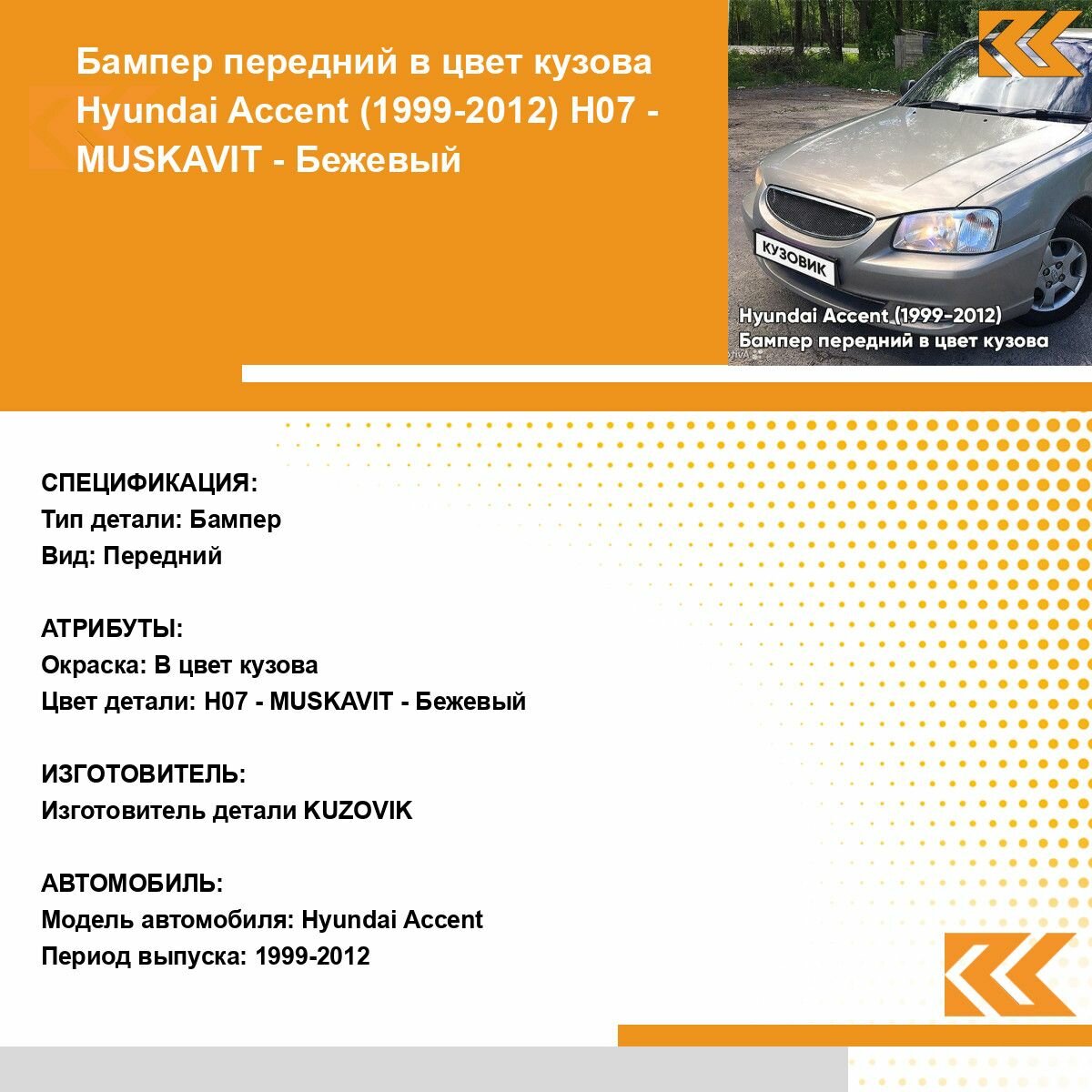 СохранитьБампер передний в цвет кузова для Хендай Акцент Hyundai Accent (1999-2012) H07 - MUSKAVIT - Бежевый интересное: