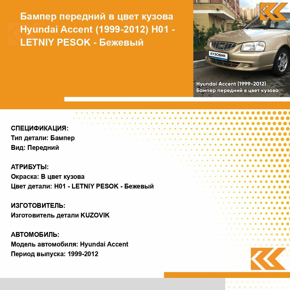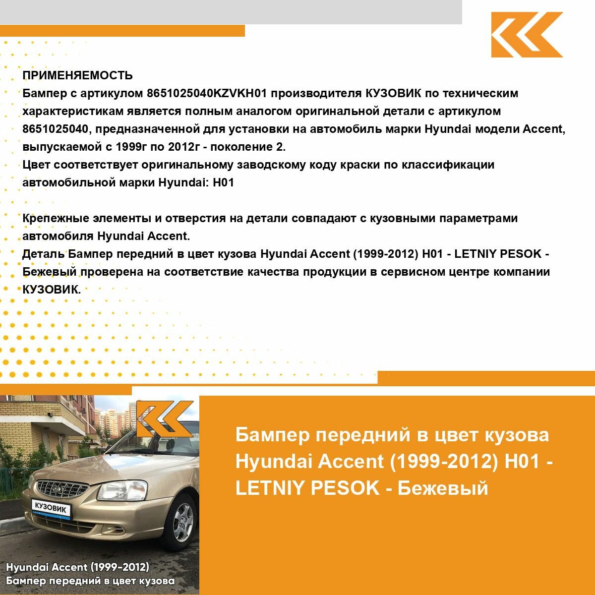 СохранитьБампер передний в цвет кузова для Хендай Акцент Hyundai Accent (1999-2012) H01 - LETNIY PESOK - Бежевый интересное: