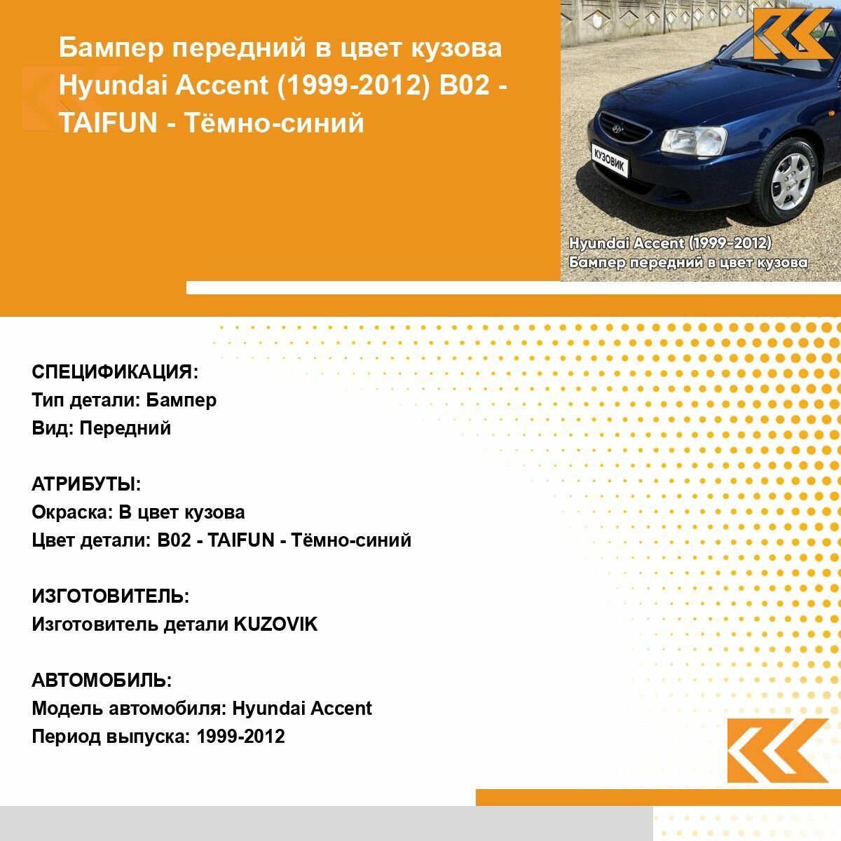 Купить Бампер передний в цвет кузова для Хендай Акцент Hyundai Accent (1999-2012) B02 - TAIFUN - Темно-синий