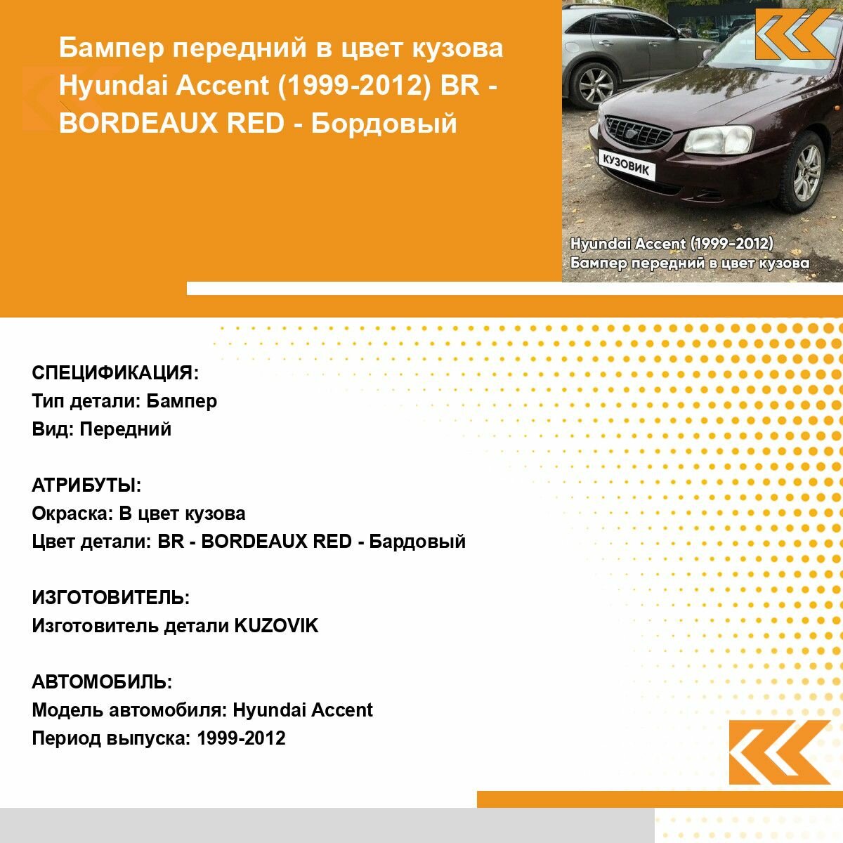 Ниже Вы можете прочитать отзывы на Бампер передний в цвет кузова для Хендай Акцент Hyundai Accent (1999-2012) BR - BORDEAUX RED - Бордовый, ознакомится с подробными характеристиками, посмотреть интересные обзоры и фотографии на Бампер передний в цвет кузова для Хендай Акцент Hyundai Accent (1999-2012) BR - BORDEAUX RED - Бордовый.