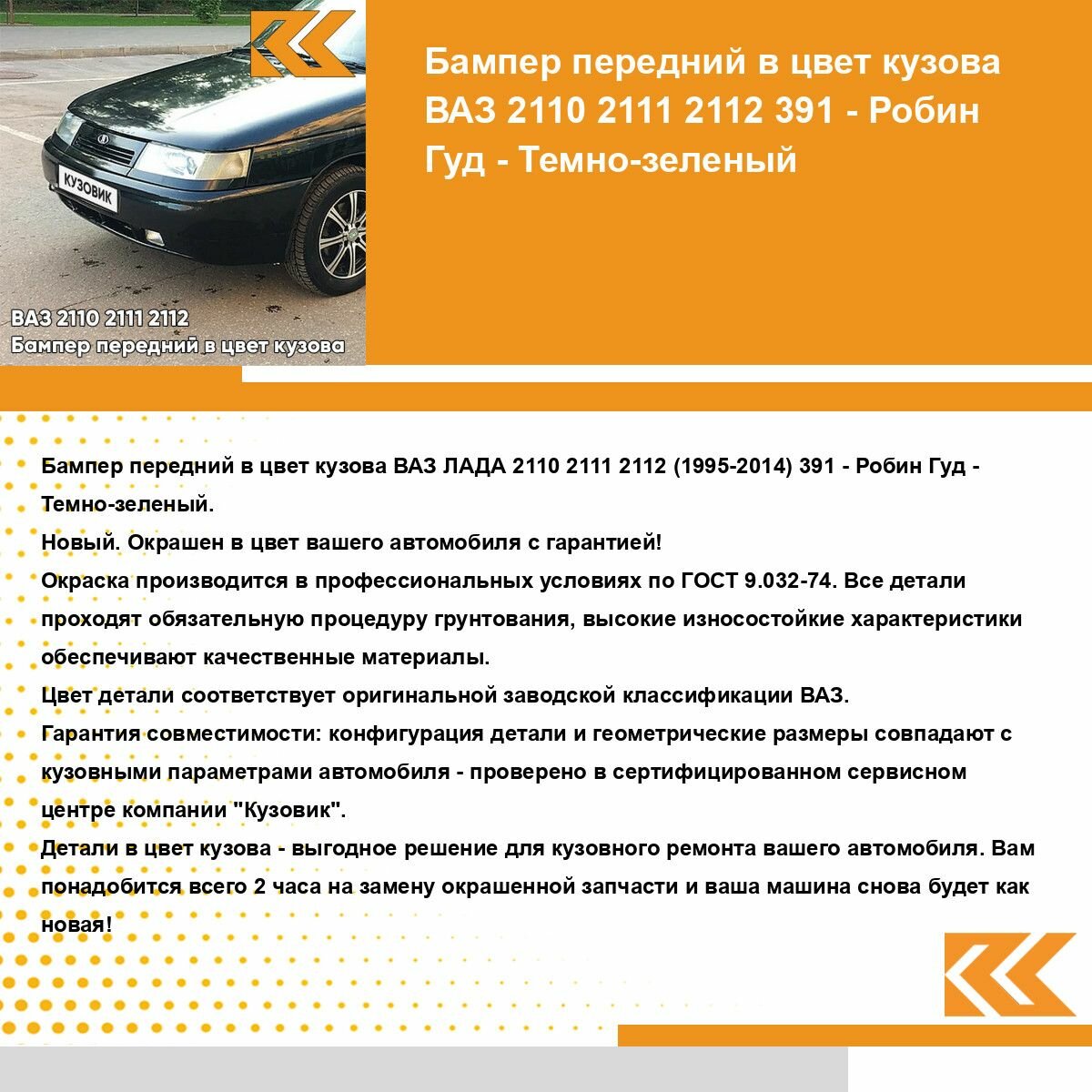 СохранитьБампер передний в цвет кузова для ВАЗ 2110 2111 2112 391 - Робин Гуд - Темно-зеленый интересное: