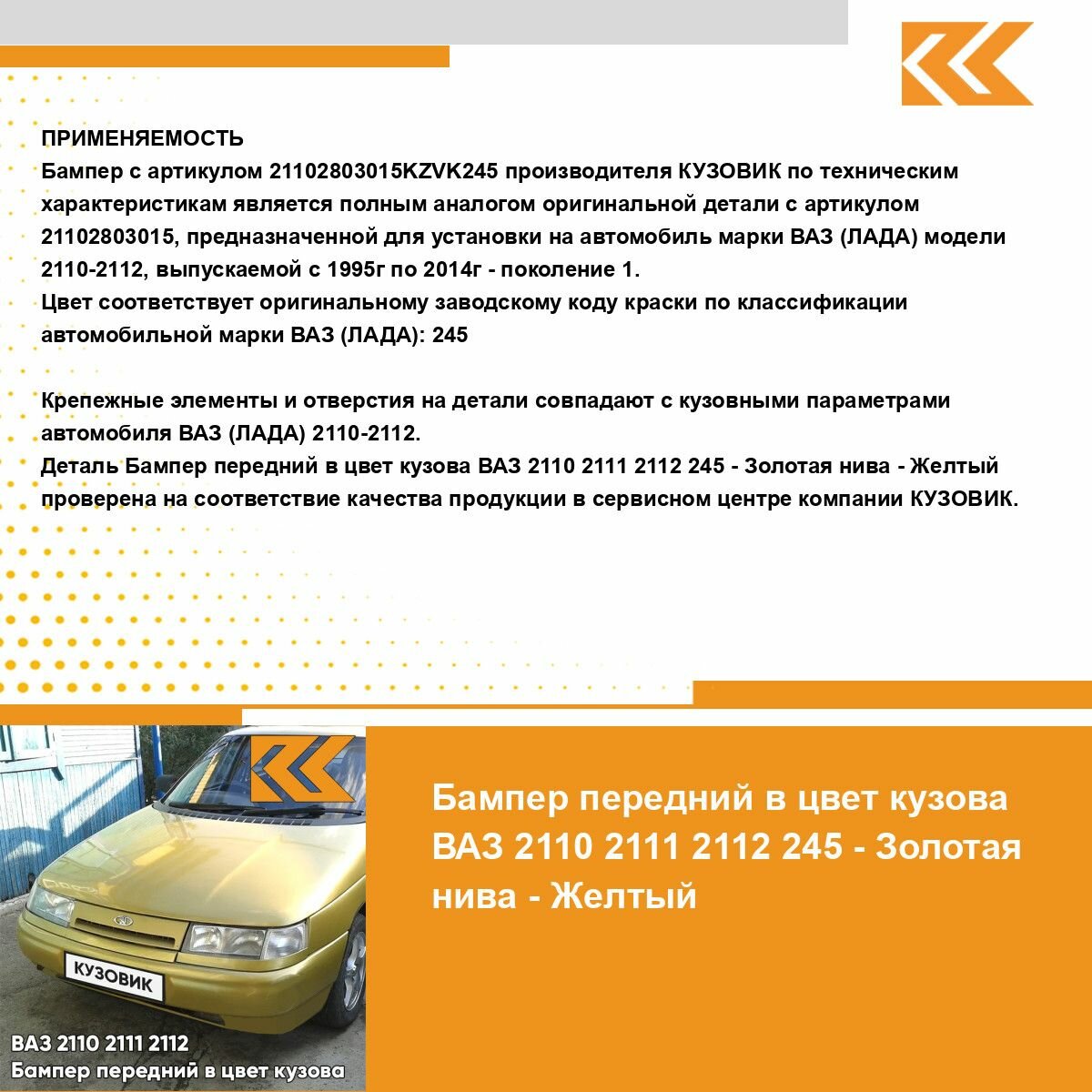 Ниже Вы можете прочитать отзывы на Бампер передний в цвет кузова для ВАЗ 2110 2111 2112 245 - Золотая нива - Желтый, ознакомится с подробными характеристиками, посмотреть интересные обзоры и фотографии на Бампер передний в цвет кузова для ВАЗ 2110 2111 2112 245 - Золотая нива - Желтый.
