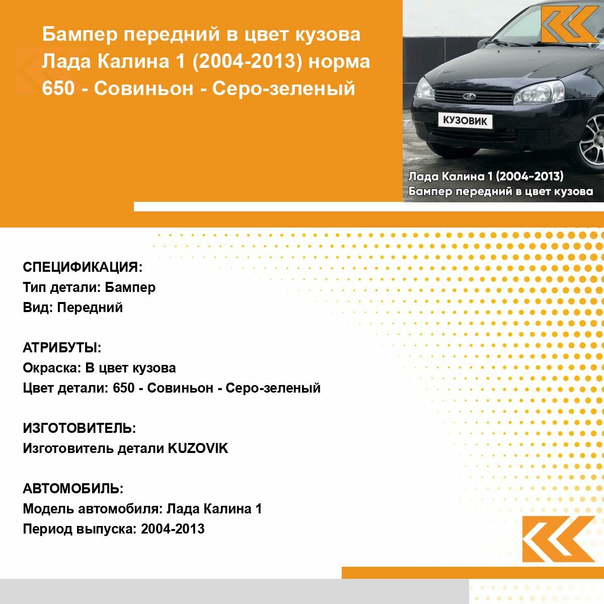 Бампер передний в цвет кузова Лада Калина 1 норма 650 - Совиньон - Серо-зеленый