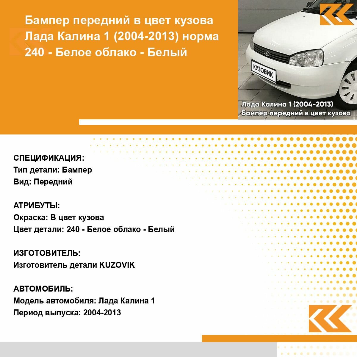 СохранитьБампер передний в цвет кузова для Лада Калина 1 (2004-2013) норма 240 - Белое облако - Белый интересное: