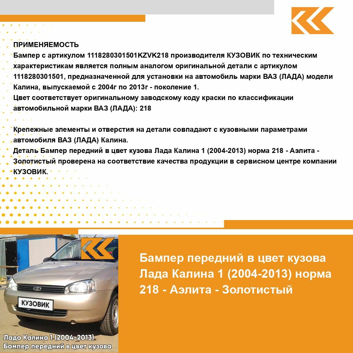 СохранитьБампер передний в цвет кузова для Лада Калина 1 (2004-2013) норма 218 - Аэлита - Золотистый интересное: