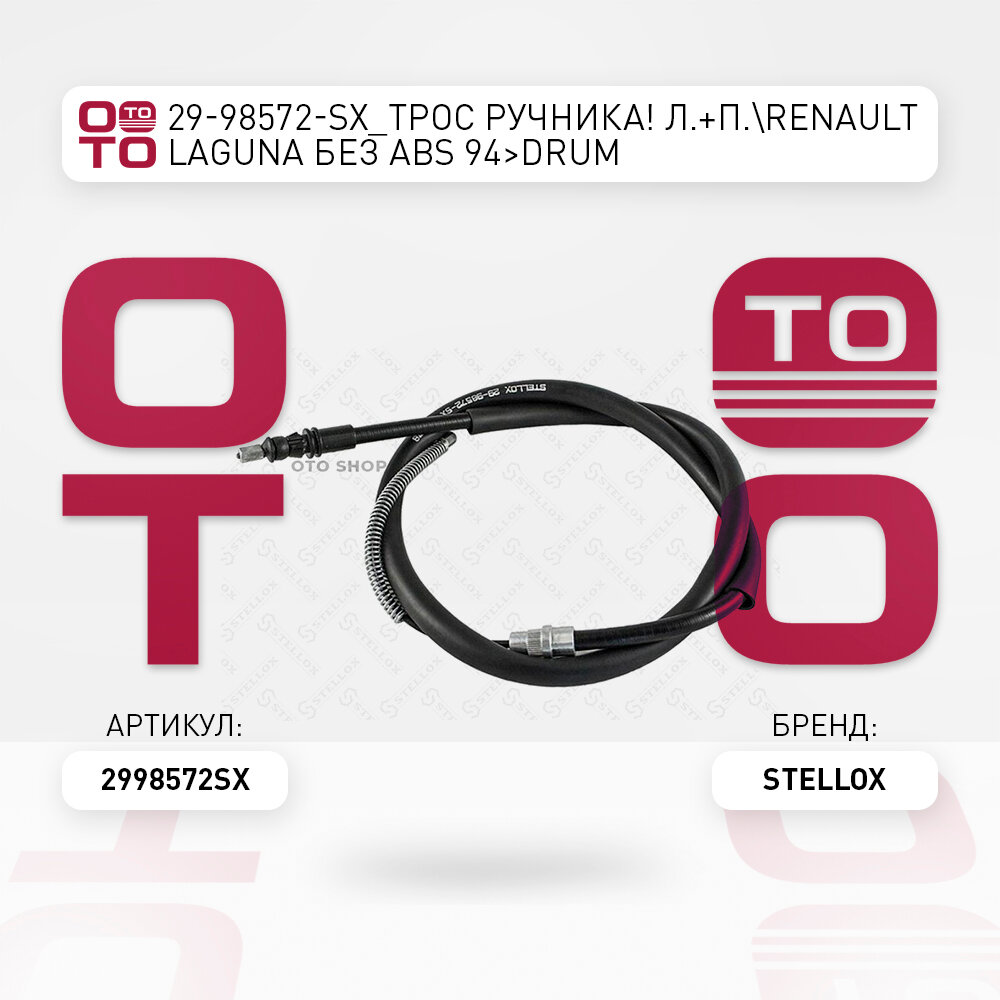 Купить трос ручника л.+п. \ Renault ( Ренаут / Рено ) ( Ренаут / Рено ) Laguna ( Лагуна ) ( Лагуна ) без ABS 94 drum STELLOX 2998572SX, 2998572_SX, 29-98572-SX