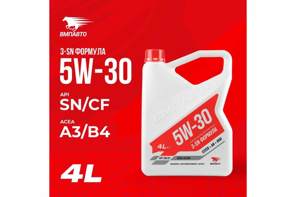 Купить ВМПАВТО Вмпавто 3-Sn 5W30 (4L) Масло Мотор.!Acea A3/B4,Api Sn/Cf,Vw 502/505, Mb 226.5/229.5/229.3,Bmw Ll-01