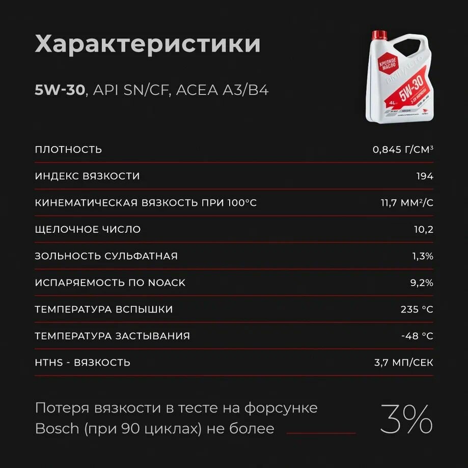 Масло моторное ВМПАВТО 3-SN 5w30 (A3/B4, SN/CF), канистра 4 л.