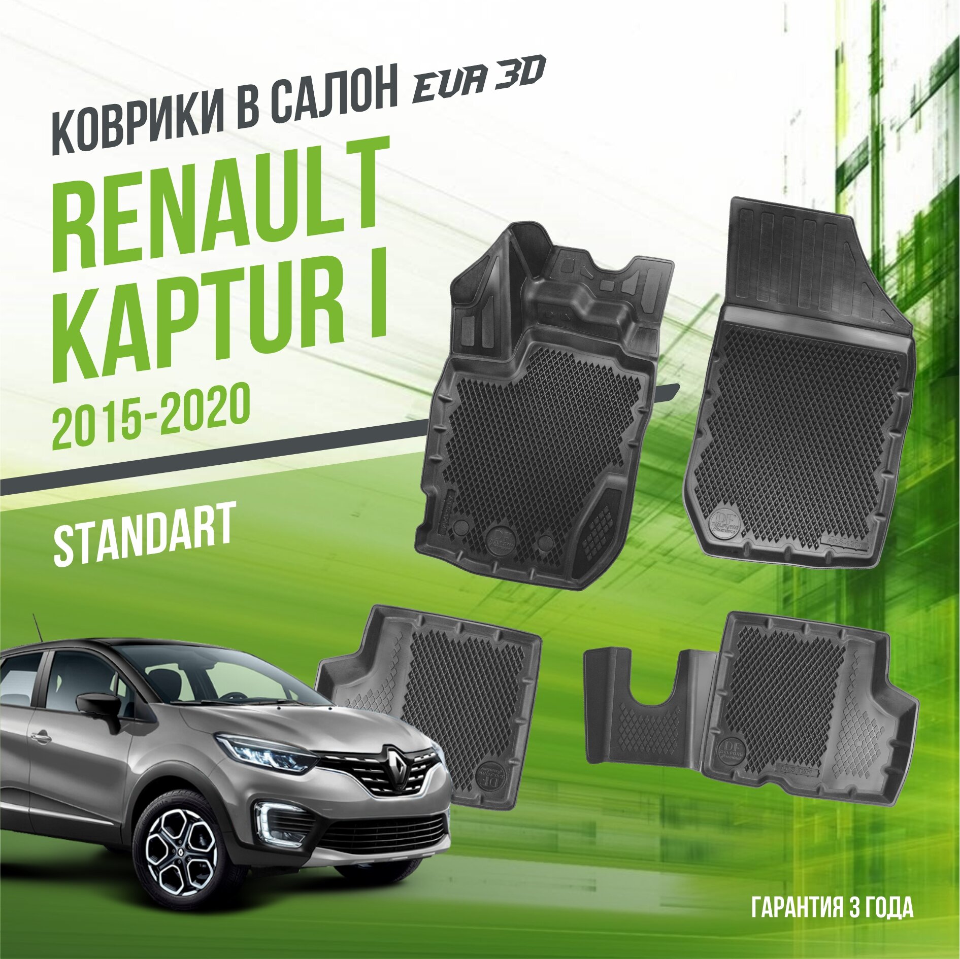 Коврики в машину Renault Kaptur I (2015-2020) / полный набор в салон Рено Каптюр 1 с бортами и ячейками ЭВА 3Д / версия "Standart EVA 3D" Delform интересное: