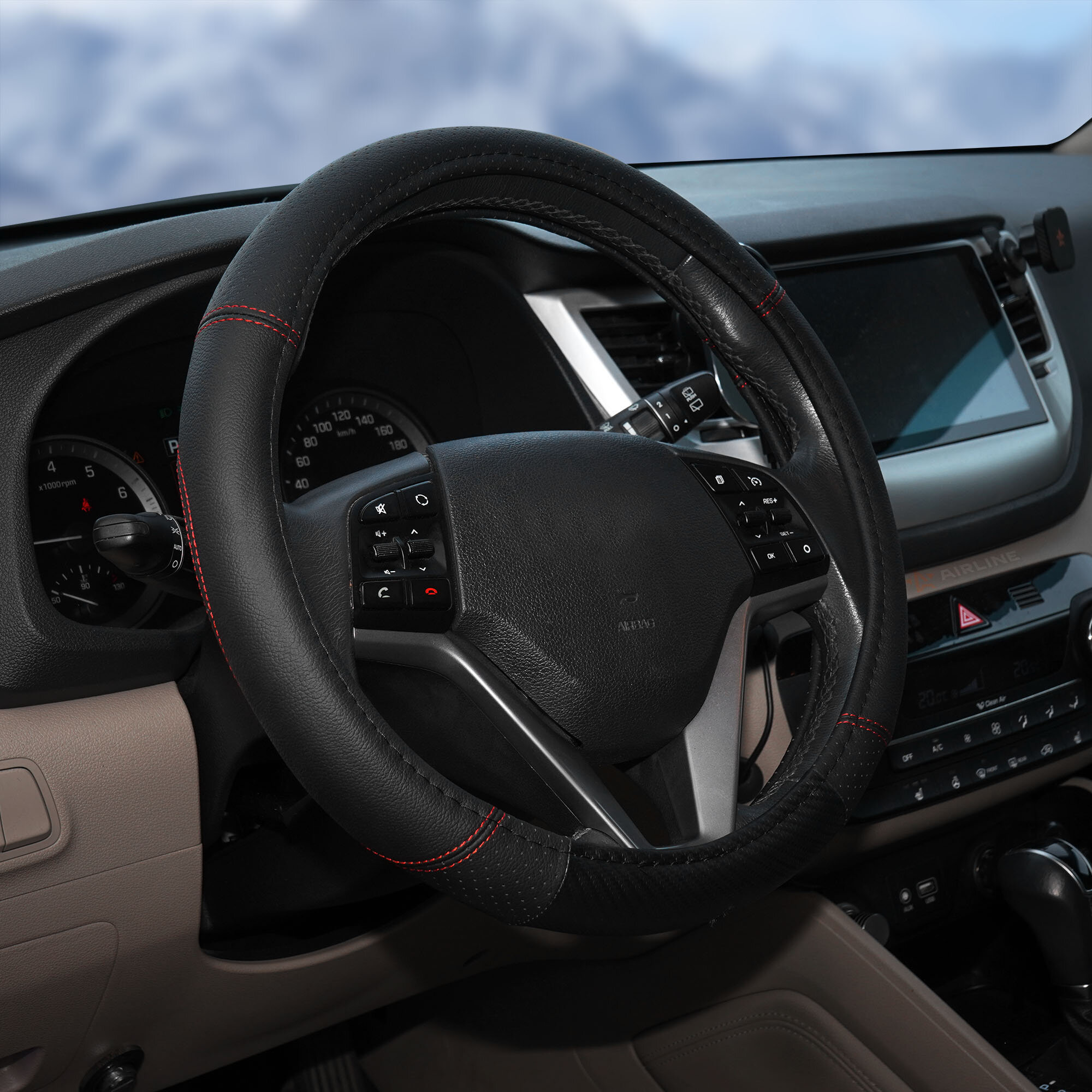 Оплетка на руль, искусст, кожа с перф,, черная, красн, прошивка, 38 см/М (AWS-LI-19M)