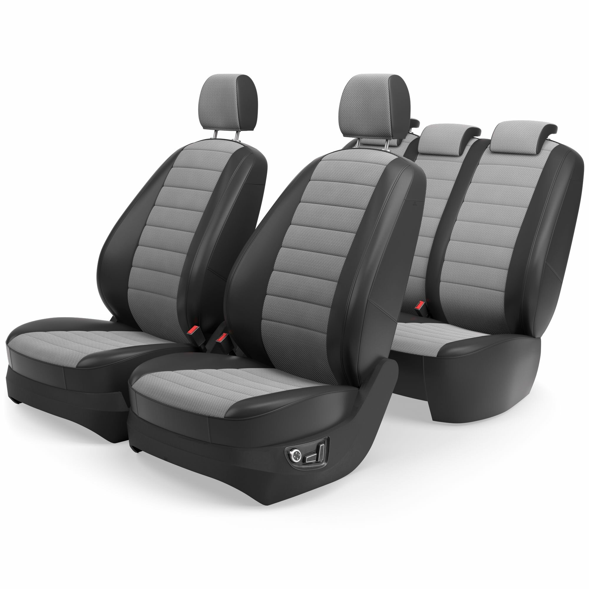 Комплект каркасных чехлов 5D CarFashion Consul Plus, чёрные, отстрочка серая